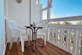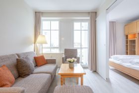 Die Ferienwohnung verfügt über kostenfreies WLAN und die Erstausstattung an Bettwäsche ist inklusive. Das Schlafzimmer mit Verdunklung verfügt über ein Doppelbett, im Wohnzimmer befindet sich zusätzlich eine Doppelschlafcouch. Darüber hinaus verfügt die Ferienwohnung über ein Bad mit Dusche/WC und Föhn. Die voll ausgestattete, offene Küche mit Mikrowelle, Kaffeemaschine und Toaster lässt keine Wünsche offen. Ein Fernseher inkl. 3 Sky-Sender rundet die hochwertige Einrichtung ab. Nach einem erlebnisreichen Urlaubstag können Sie auf dem Balkon in Südwestlage Platz nehmen. Der Ausblick und die Sitzgruppe sorgen hier für ein wunderbares Urlaubsgefühl. Im Nichtraucher-Apartment sind Haustiere nicht gestattet.
