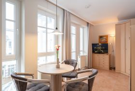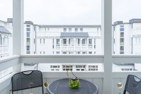 Nach einem erlebnisreichen Urlaubstag können Sie auf dem Balkon in Nordostlage Platz nehmen. Im Nichtraucher-Apartment sind keine Haustiere gestattet.
