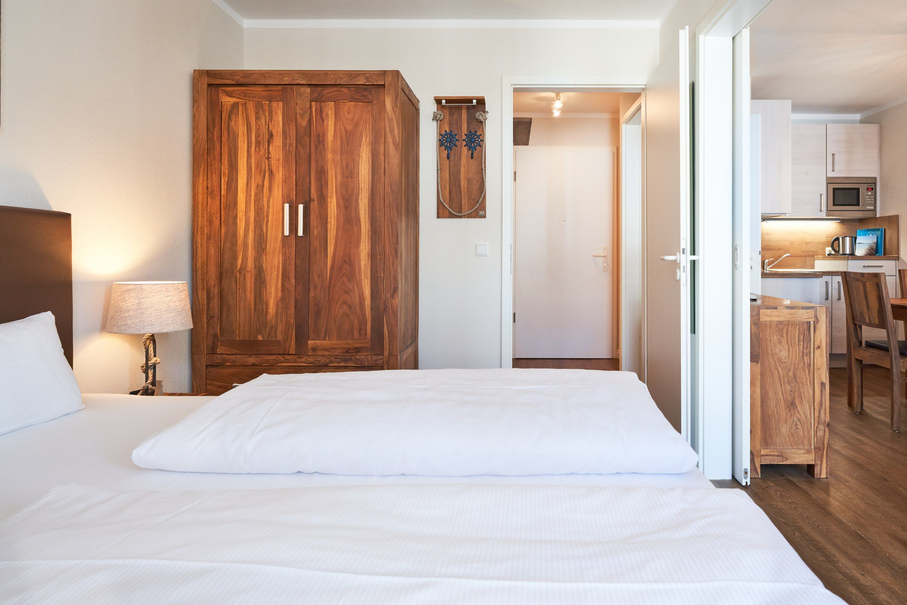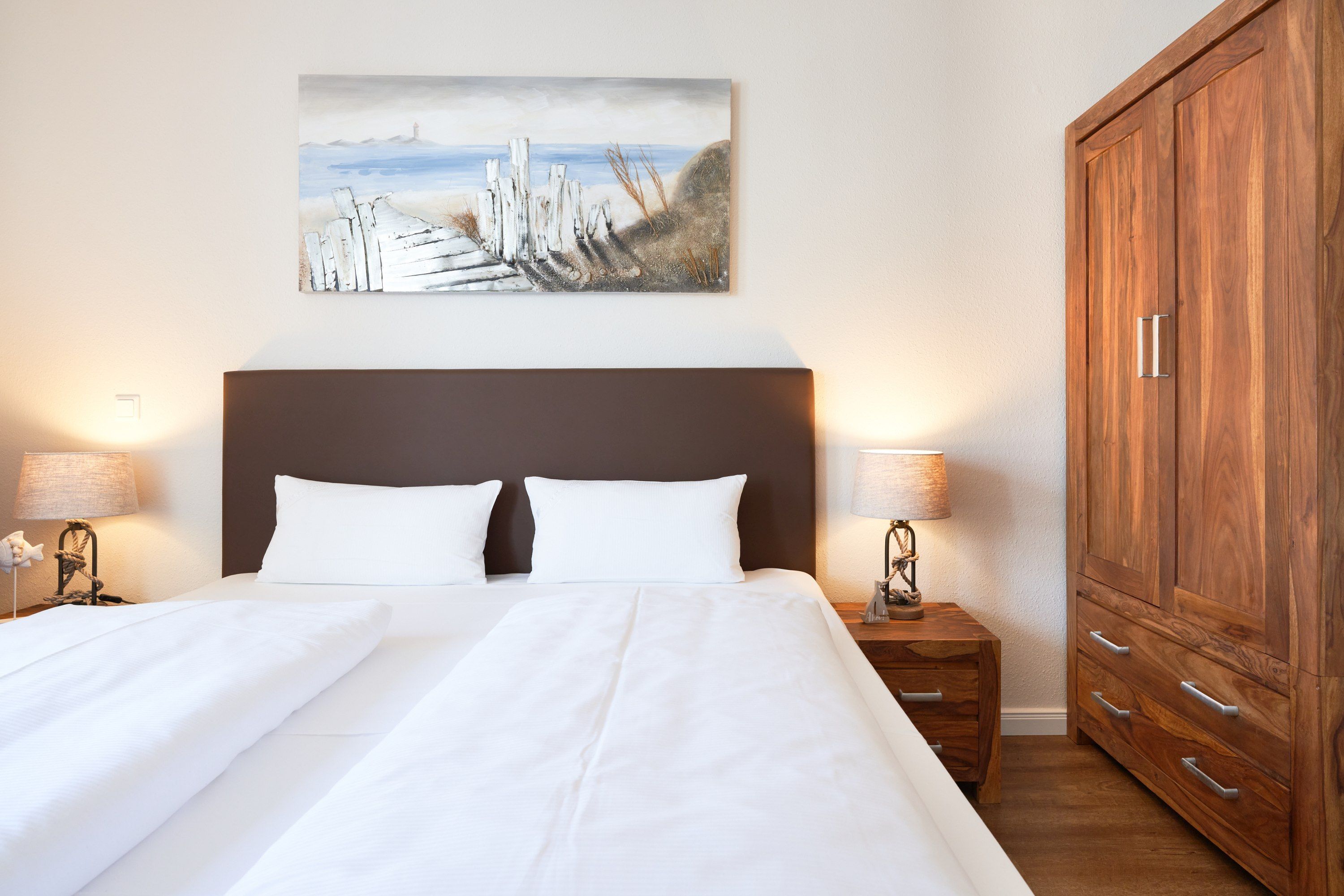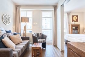 Die Ferienwohnung verfügt über kostenfreies WLAN und die Erstausstattung an Bettwäsche ist inklusive. Das Schlafzimmer mit Verdunklung verfügt über ein Doppelbett, im Wohnzimmer befindet sich zusätzlich eine Doppelschlafcouch. Darüber hinaus verfügt die Ferienwohnung über ein Bad mit Dusche/WC. Die voll ausgestattete, offene Küche mit Mikrowelle, Kaffeemaschine und Toaster lässt keine Wünsche offen. Ein Fernseher inkl. 3 Sky-Sender rundet die hochwertige Einrichtung ab. Nach einem erlebnisreichen Urlaubstag können Sie auf dem Balkon in Nordwestlage Platz nehmen. Der Ausblick und die Sitzgruppe sorgen hier für ein wunderbares Urlaubsgefühl. Im Nichtraucher-Apartment ist ein mitreisendes Haustier gestattet.