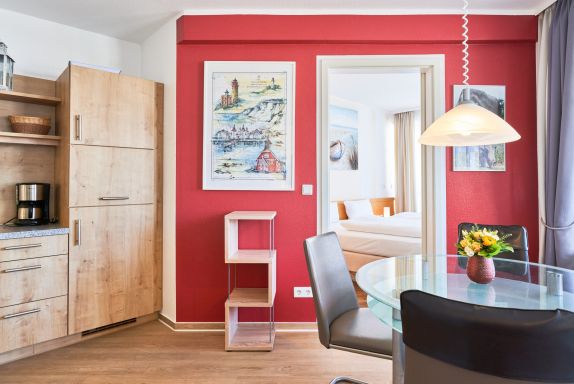 Nach einem erlebnisreichen Urlaubstag können Sie auf dem Balkon in Nordostlage Platz nehmen. Der Ausblick und die Sitzgruppe sorgen hier für ein wunderbares Urlaubsgefühl. Im Nichtraucher-Apartment sind keine Haustiere gestattet.