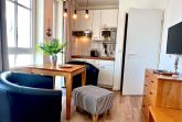 Nach einem erlebnisreichen Urlaubstag können Sie auf dem Balkon in Südwestlage Platz nehmen. Im Nichtraucher-Apartment sind keine Haustiere gestattet.