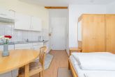 Die Ferienwohnung verfügt über kostenfreies WLAN und die Erstausstattung an Bettwäsche ist inklusive. Der kombinierte Wohn-/Schlafbereich mit Verdunklung verfügt über ein Doppelbett. Darüber hinaus verfügt die Ferienwohnung über ein Bad mit Dusche/WC und Föhn. Die voll ausgestattete Pantry mit Kaffeemaschine und Toaster lässt keine Wünsche offen. Ein Fernseher inkl. 3 Sky-Sender rundet die gute Einrichtung ab. Im Nichtraucher-Apartment ist ein mitreisendes Haustier gestattet.