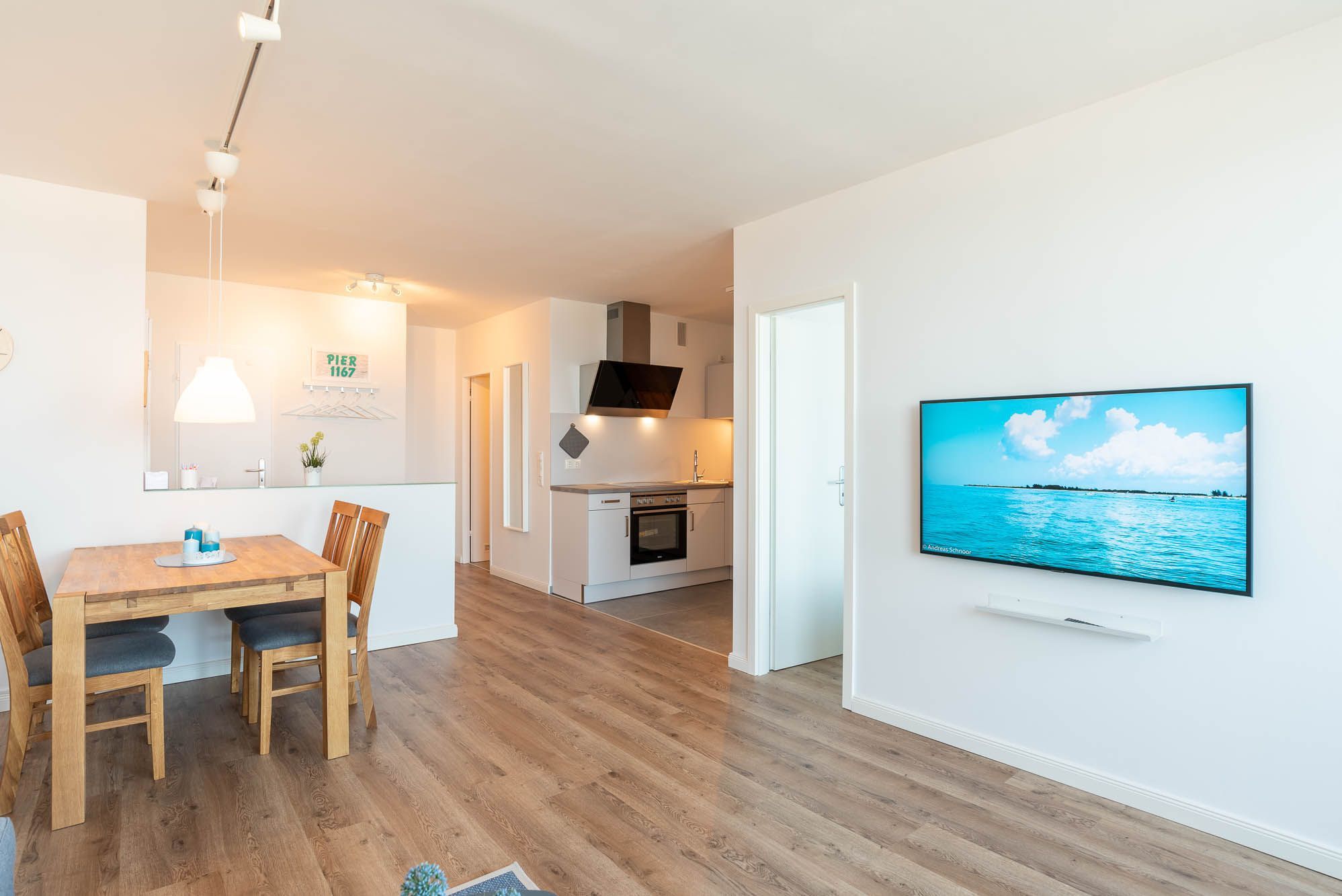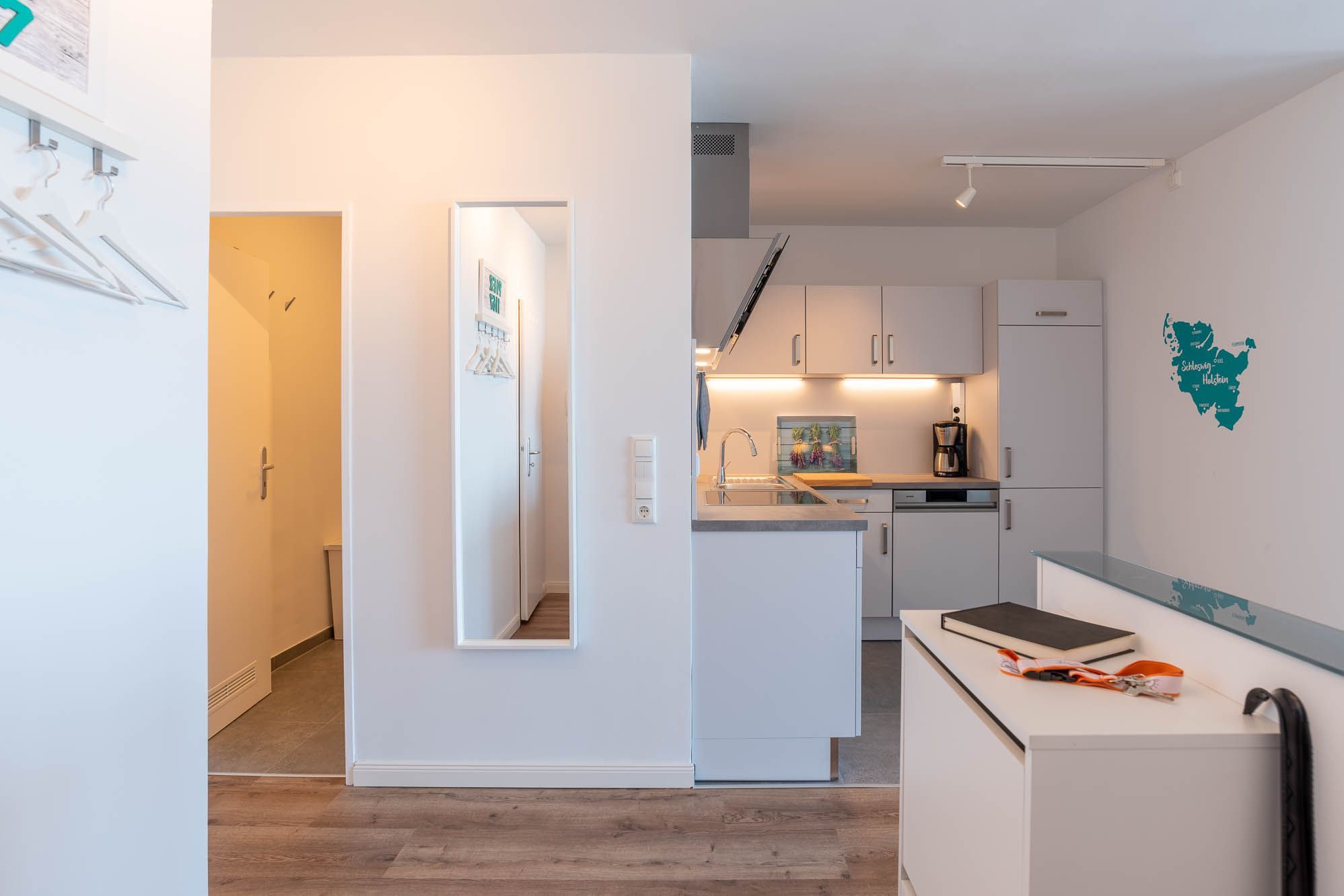 Einen Hauseingang weiter befindet sich eine weitere Ferienwohnung von uns: Dock 13. Die zwei Wohnungen grenzen mit den Balkonen direkt aneinander. Dies kann für Sie von Vorteil sein, falls Sie weitere Unterkünfte für mehrere Personen benötigen. Sprechen Sie uns gerne an!