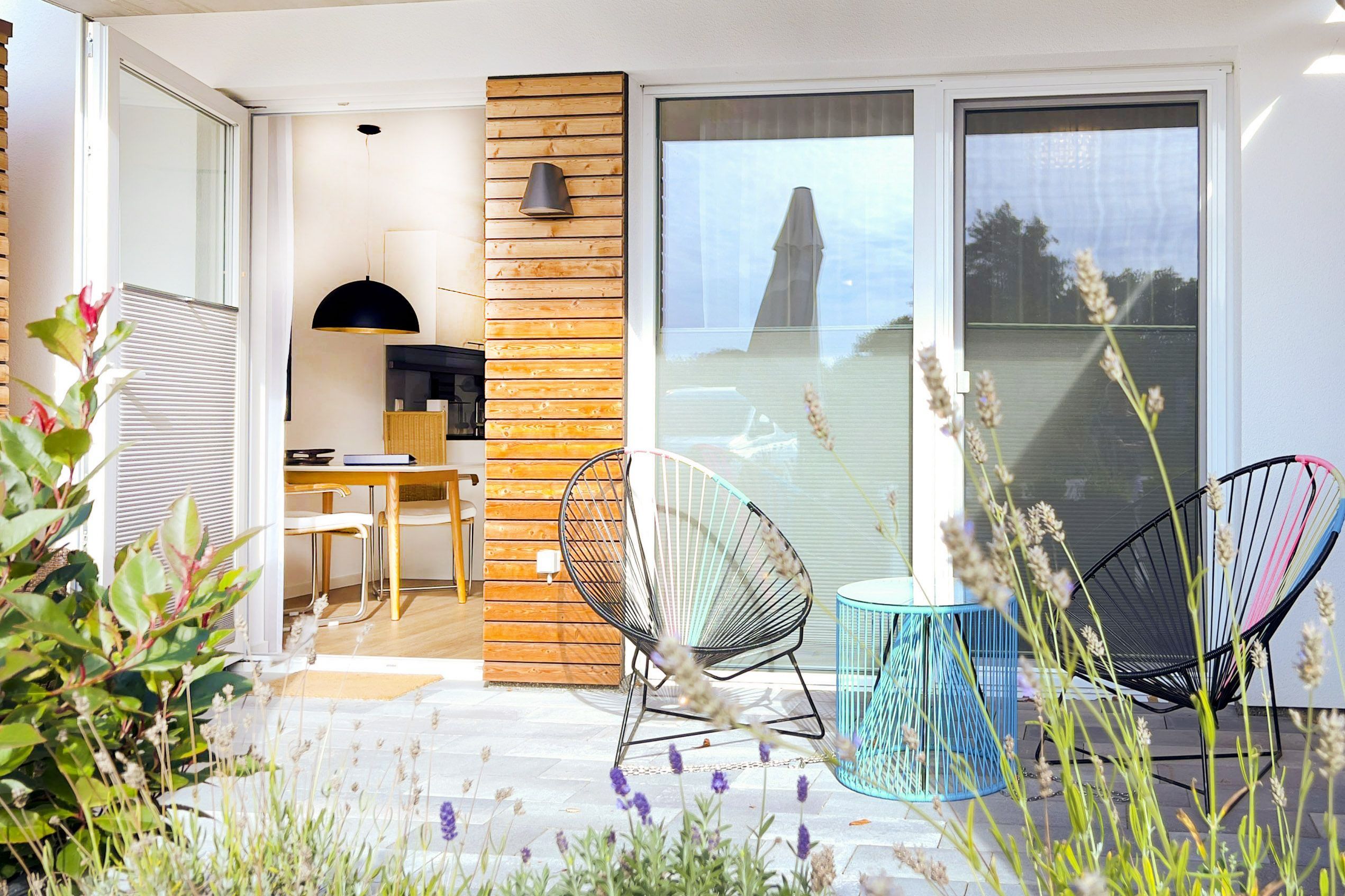 • Terrasse: Westlich ausgerichtet mit Gartenmöbeln, ideal zum Entspannen und Genießen des milden Ostseeklimas