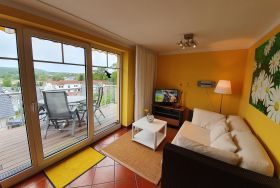 Ihr 2-Raum-Nichtraucher- Appartement 28RB11 Windspiel hat eine Größe von ca. 42 qm und ist für max. 2 Personen eingerichtet. Der angrenzende und möblierte Balkon mit Blick über die Binzer Dächer lädt zum Entspannen und Verweilen ein.