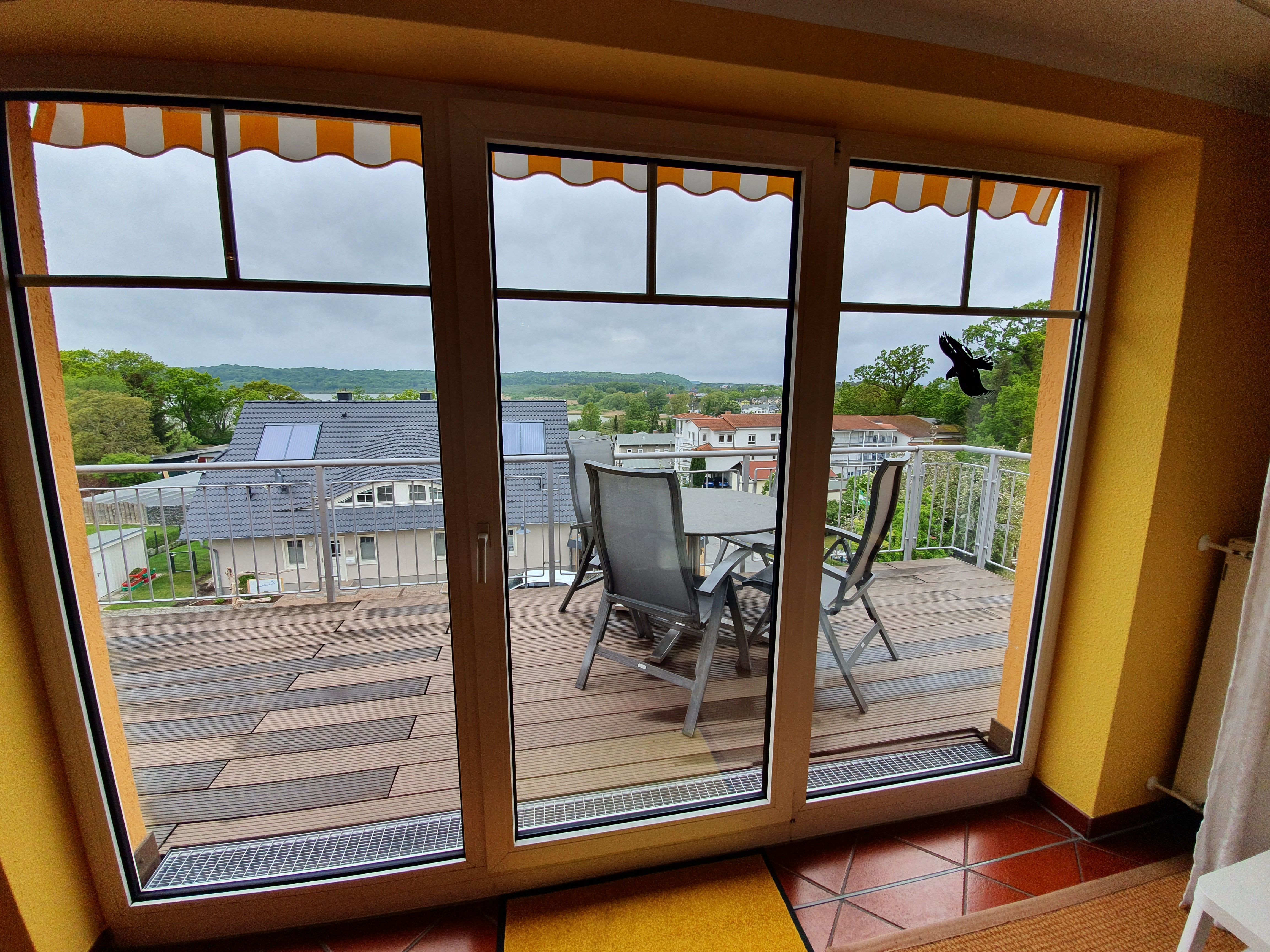 Die Unterkunft befindet auf dem Zinglingsberg. Die Hanglage auf einem der Binzer Hügeln garantiert aus vielen Wohnungen schöne Ausblicke auf den Binzer Ortskern, teilweise bis zum Schmacher See.