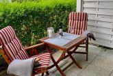 Ferienwohnung in Kühlungsborn für 2-3 Personen mit einer Terrasse auf der man in der Sonne frühstücken kann.