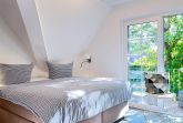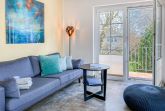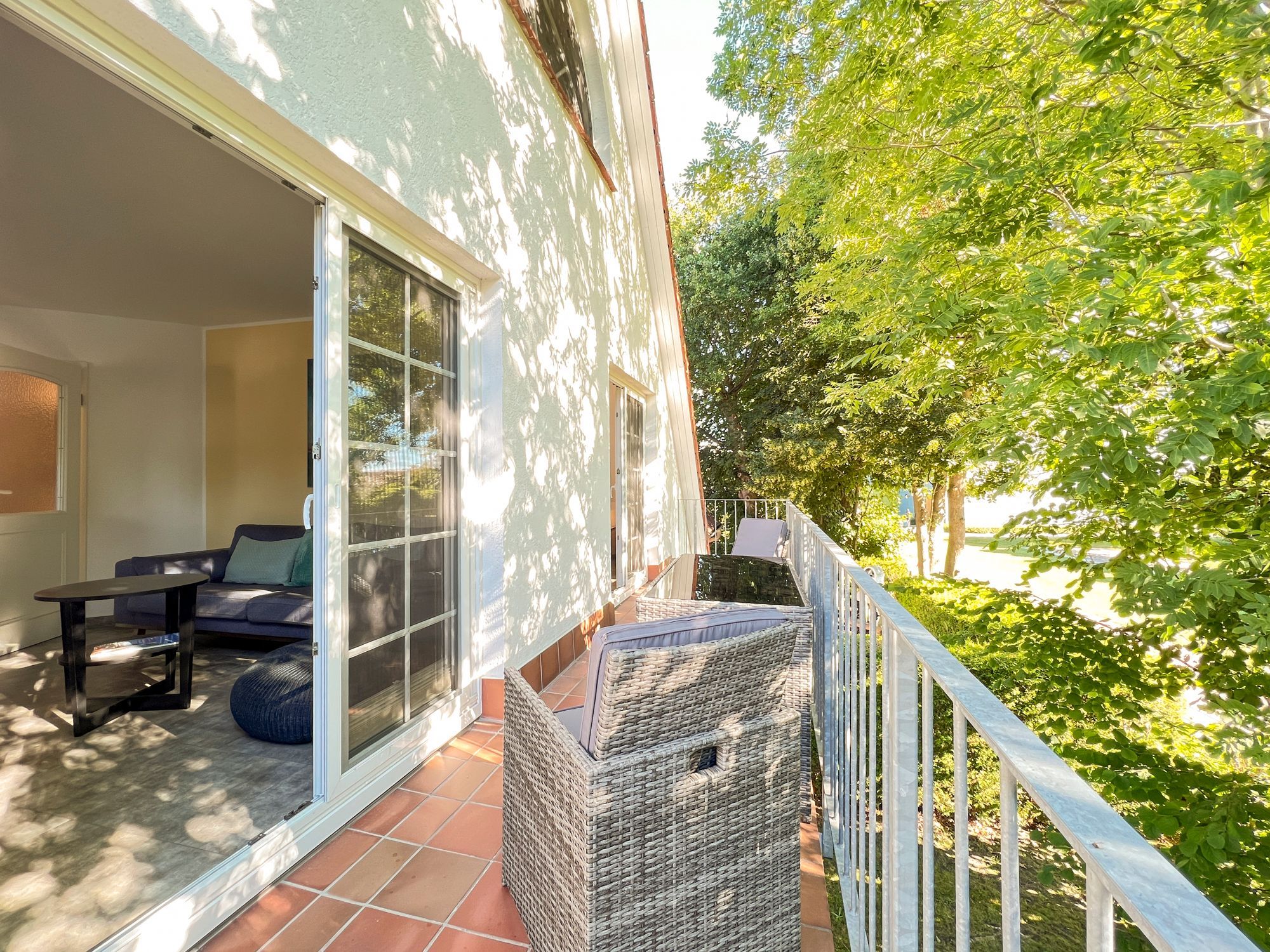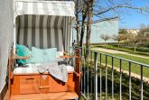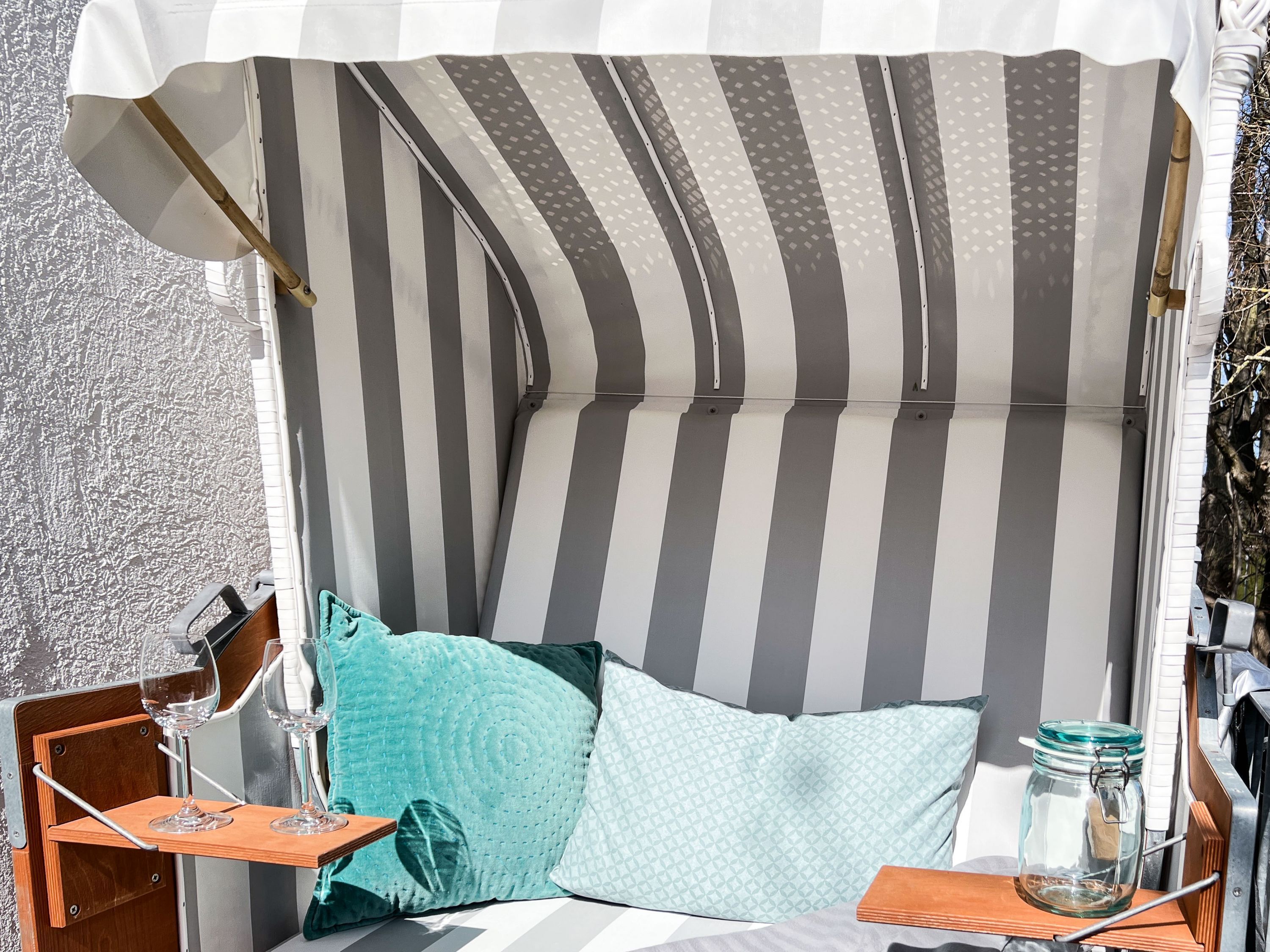 • Balkon: Großzügiger Balkon mit gemütlichem Strandkorb und grünem Sichtschutz, ideal zum Entspannen.