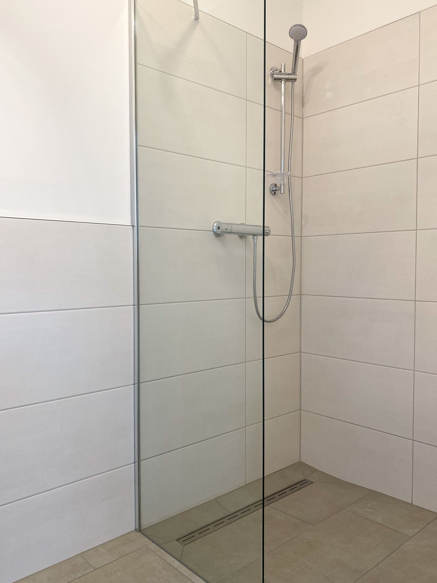 • Modernes Badezimmer: Ebenerdige Dusche und separates Gäste-WC