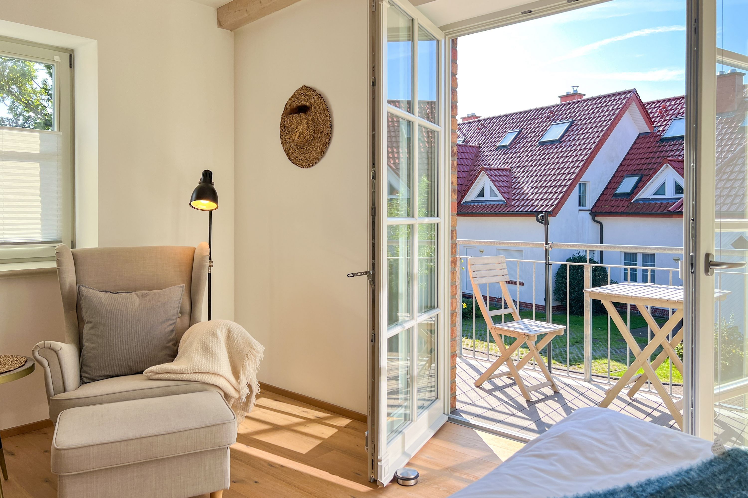 Die Ferienwohnung empfängt Sie mit einem einladenden Wohn-/Schlafbereich, der durch seine durchdachte Raumaufteilung überzeugt. Die voll ausgestattete Küchenzeile ermöglicht es Ihnen, Ihre Lieblingsgerichte zuzubereiten. Das moderne Badezimmer mit ebenerdiger Dusche sorgt für zusätzlichen Komfort. Auf der privaten Terrasse und dem Balkon können Sie die frische Ostseeluft genießen und entspannen.