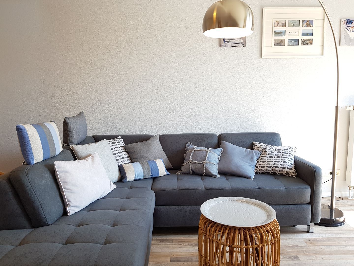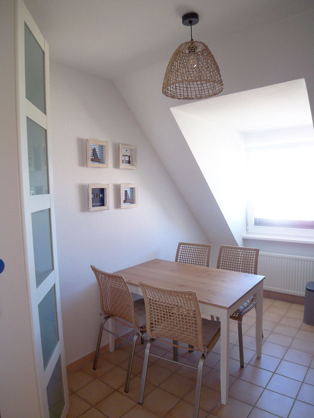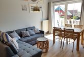 Im Wohnzimmer befindet sich ein bequemes Ecksofa um sich von Ihren Ausflüge in Kühlungsborn und Umgebung zu erholen. Sie finden hier einen Flachbildfernseher vor. Der Essbereich ist im Wohnzimmer integriert.