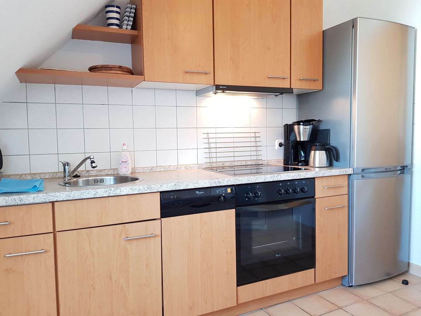 In der Küche finden Sie neben einem Backofen mit 4-Platten Ceran Kochfeld und einem Geschirrspüler, noch einen großen Kühlschrank mit Gefrierschrank um sich auch für längere Aufenthalte eindecken zu können.