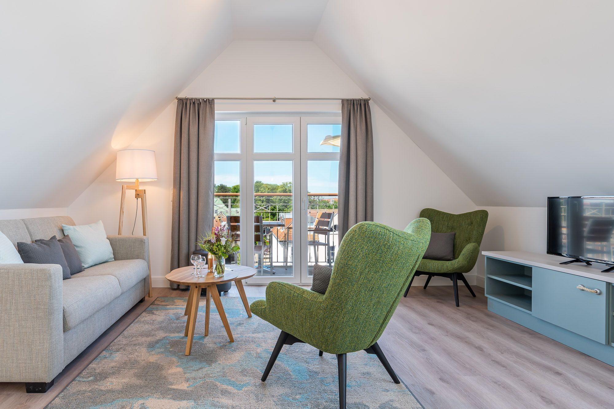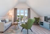 Der Schlafbereich verfügt über ein 1,60 x 2,00 m Bett, sowie über einen Kleiderschrank und ein TV-Gerät. Die zweite Schlafmöglichkeit ist ein bequemes Schlafsofa mit einer Liegefläche von 1,50 x 1,95 m. Für unsere kleinen Gäste können ein Kinderreisebett und ein Kinderhochstuhl bereitgestellt werden (kostenpflichtig zu buchbar).