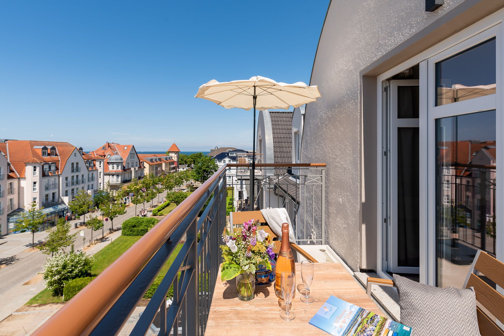 Das Einzimmer-Apartment bietet genügend Platz für 4 Personen. Außerdem verfügt es neben seiner Wohnfläche von ca. 66 qm auch über einen Balkon mit Balkonmöbeln.