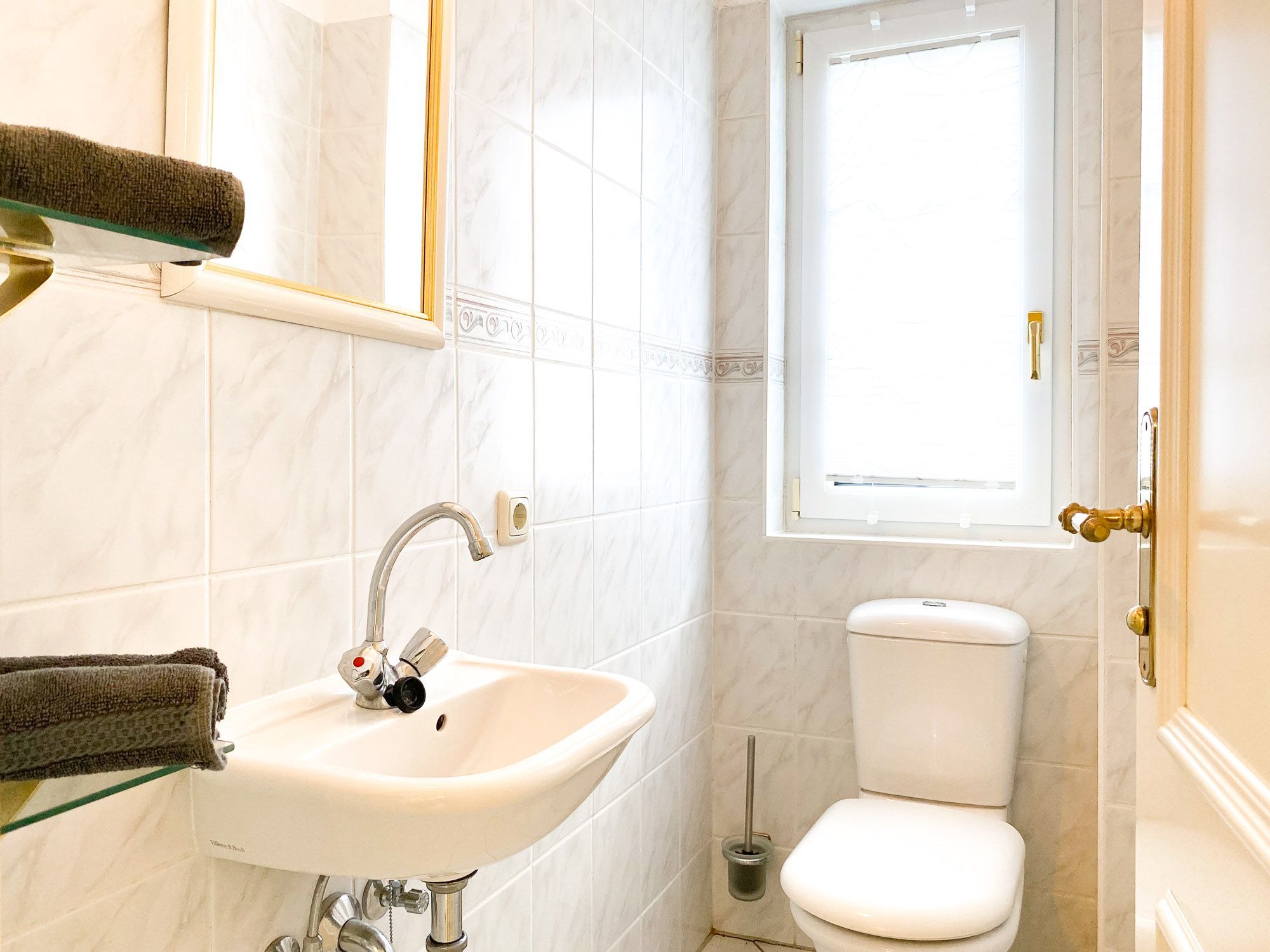 • Badezimmer: Modernes Bad mit Dusche/WC und Haartrockner