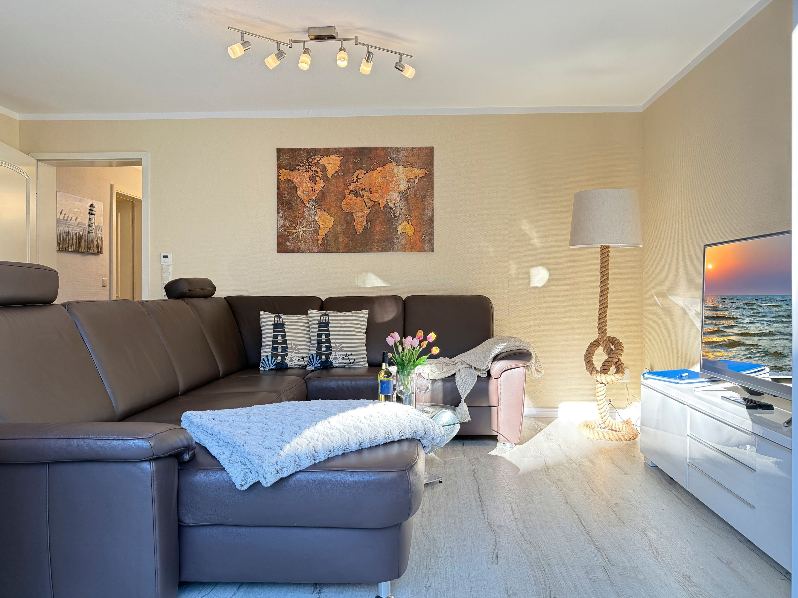Willkommen in der Ferienwohnung Hafenkoje Unterdeck im idyllischen Ostseebad Prerow! Diese neu renovierte Unterkunft bietet auf 75 m² Platz für bis zu 4 Personen und verbindet modernen Komfort mit maritimem Flair.