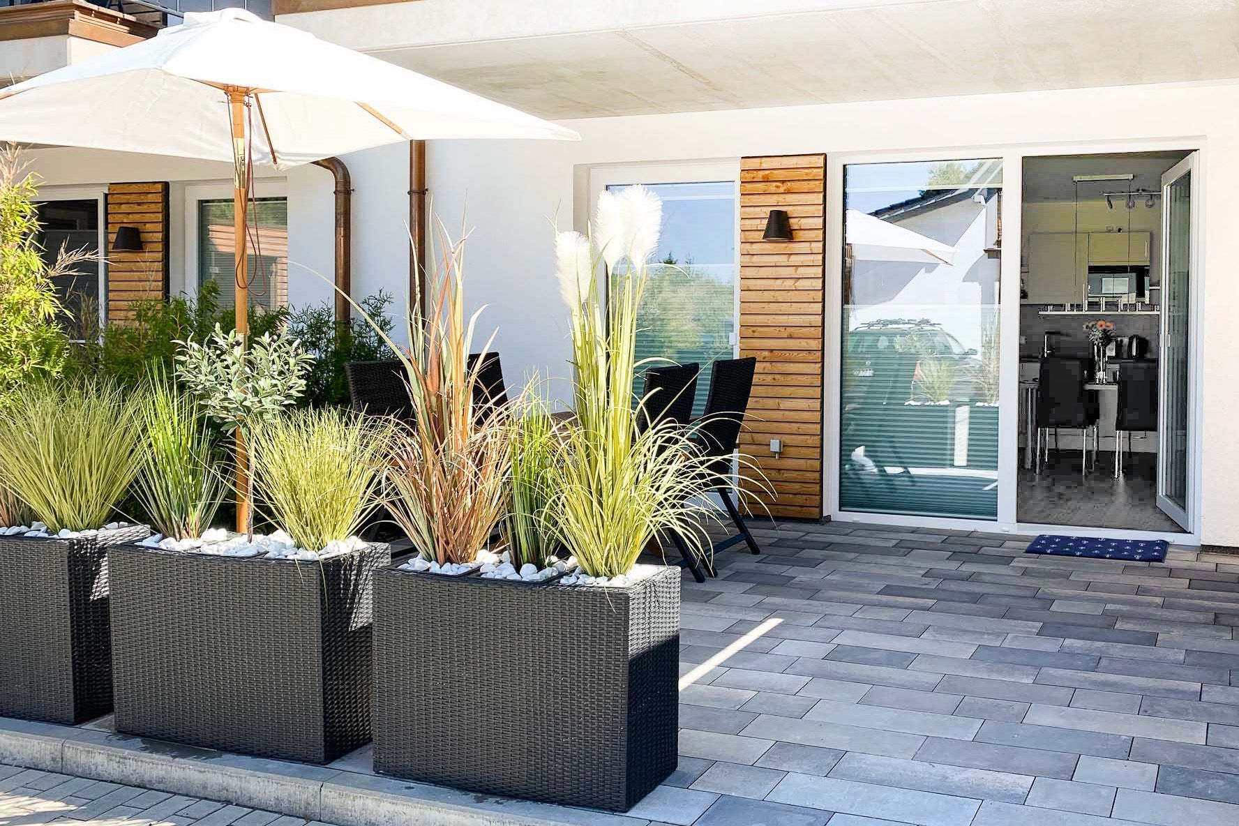 • Terrasse: Westlich ausgerichtet mit Gartenmöbeln und Sonnenschirm, ideal zum Genießen der Abendsonne