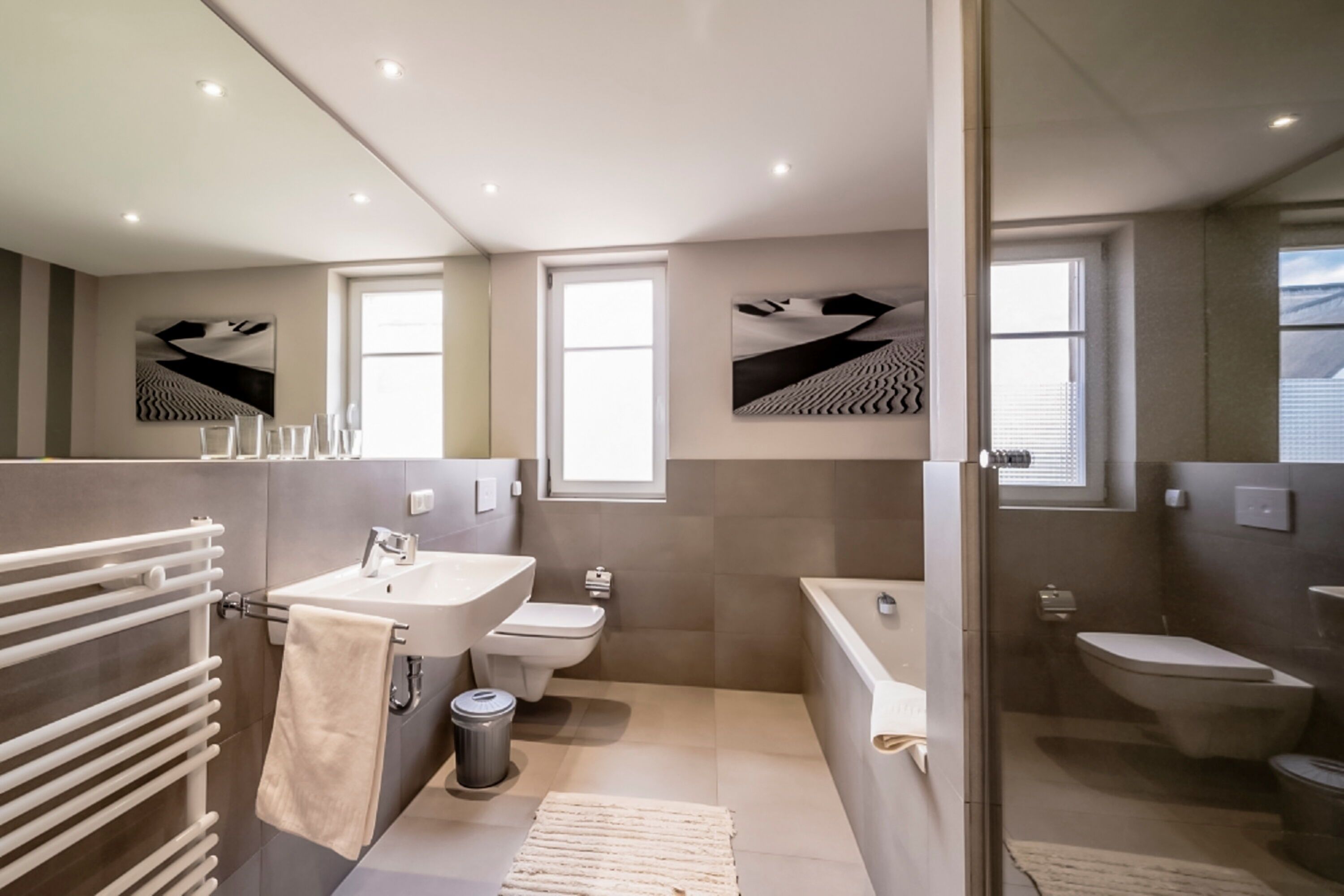 • Badezimmer: Hochwertig ausgestattet mit Badewanne und Dusche