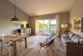 • Wohnbereich: Gemütliche Sitzgarnitur, TV-Flatscreen und Essbereich für 4 Personen