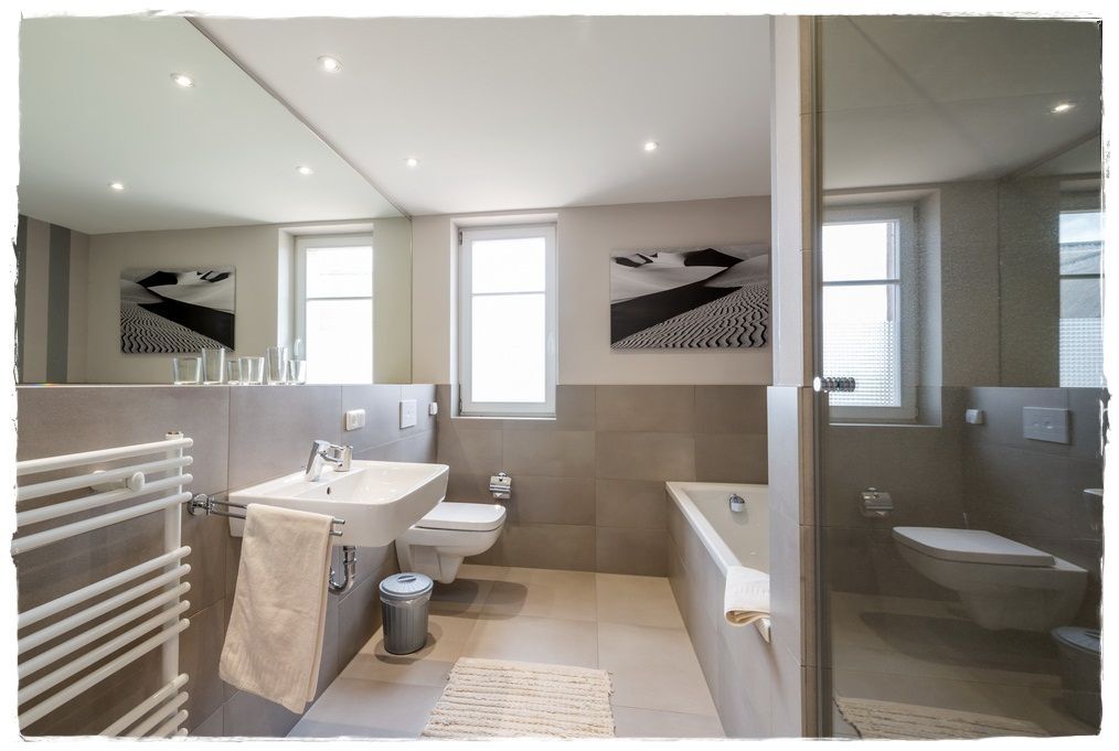 • Badezimmer: Hochwertig ausgestattet mit Badewanne und Dusche
