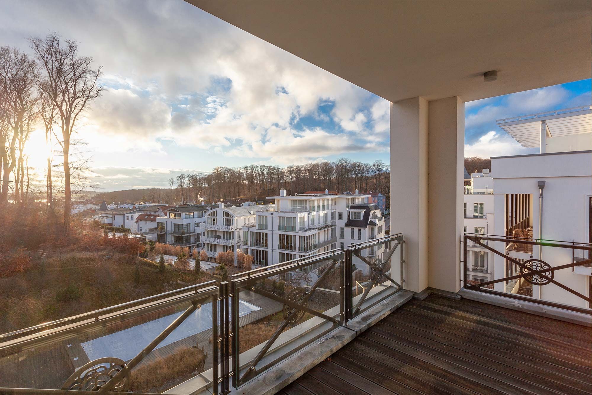 Dank der vielen bodentiefen Fenster, erwartet Sie eine rundum lichtdurchflutete Unterkunft, welche hohen Ansprüchen genügt. Die Wohnung selbst verfügt über einen hochwertigen Wohnbereich mit Fußbodenheizung und Kaminofen, gemütlichen Sofa, Essbereich und offener Küche. Die beiden Schlafzimmer verfügen jeweils über ein eigenes Ensuite-Bad. Zusätzlich dazu, gibt es noch ein weiteres Gäste-WC.