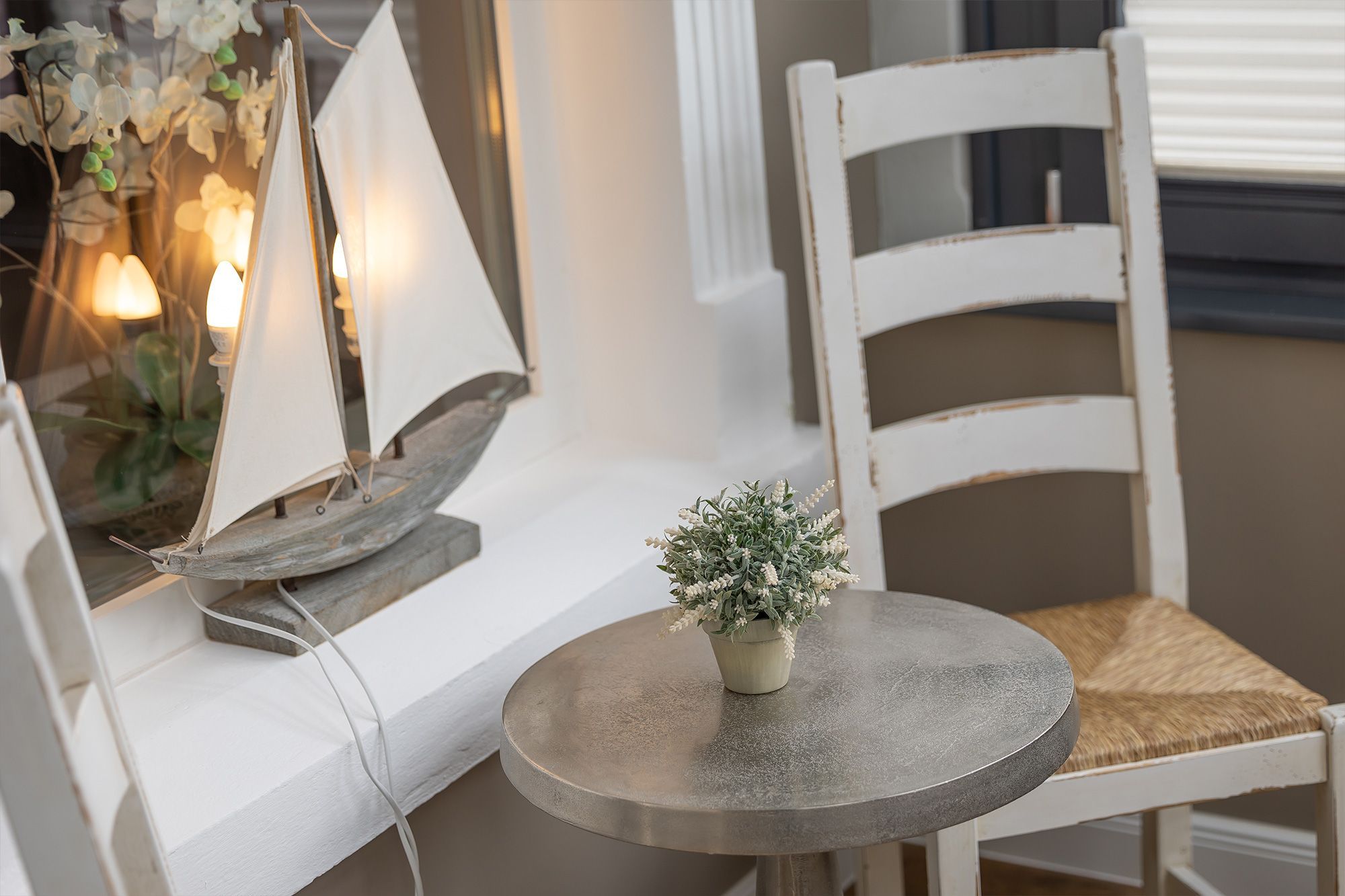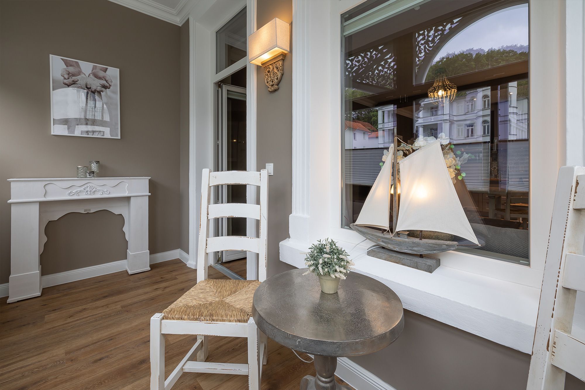 Die separate Küche ist mit einem Cerankochfeld, Backofen und Spülmaschine ausgestattet. Dazu kommen eine Kaffeepad Maschine der Marke Tassimo, Kühlschrank mit Gefrierfach, Wasserkocher, Toaster und eine Vielzahl an Küchenhelfern hinzu. Hier können Sie kleine Köstlichkeiten gerieren und Sie im Wintergarten mit Blick auf die Wilhelmstraße genießen. Ein Hochstuhl für unsere kleinen Gästen, steht Ihnen kostenfrei zur Verfügung.