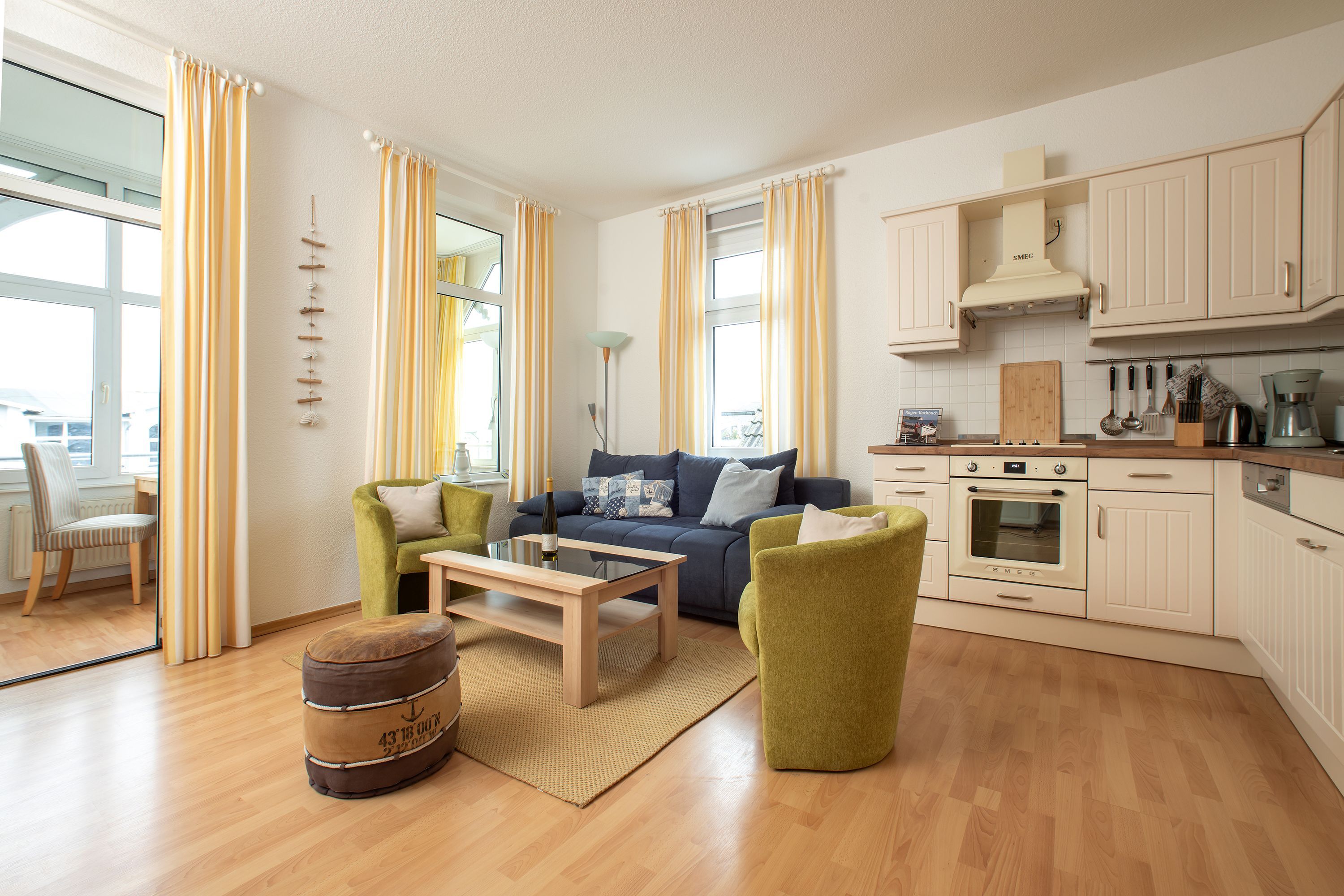 Sollten Sie einmal nicht auswärts in einem der Restaurants in Sellin speisen, erwartet Sie im Wohnbereich eine integrierte Küche, die zum Selbstkochen einlädt.