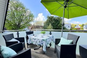 Genießen Sie die frische Ostseeluft auf dem eigenen Balkon mit bequemen Sitzmöbeln. Hier können Sie den Tag mit einem Frühstück im Freien beginnen oder abends bei einem Glas Wein ausklingen lassen.