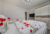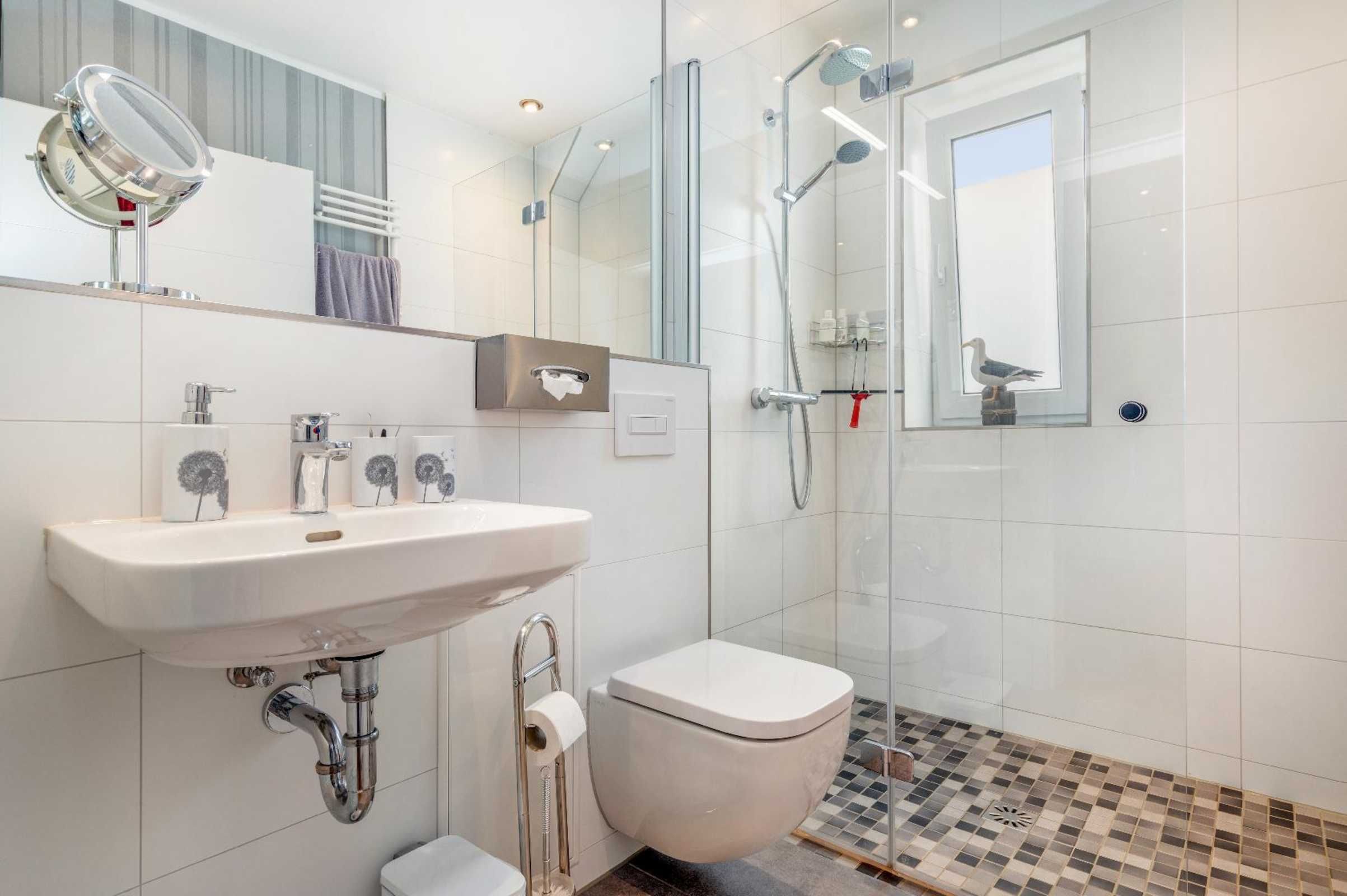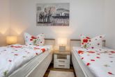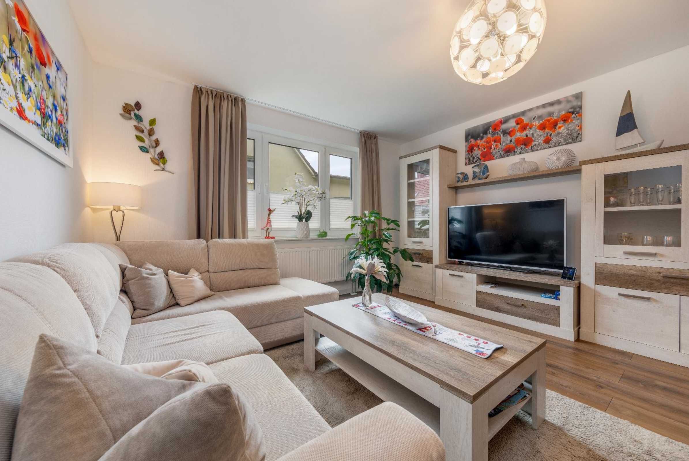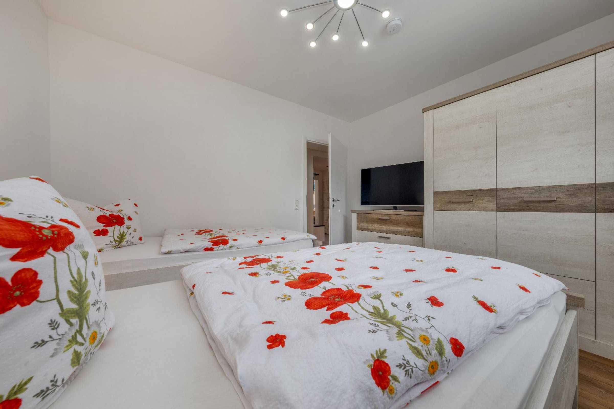 Die Ferienwohnung Mohnblume liegt ebenerdig und ist auch für Rollstuhlfahrer geeignet. Die Wohnfläche beträgt 65 qm und kann 4 Personen ganzjährig beherbergen. Die 2019 neu renovierte Wohnung gliedert sich in 2 Schlafzimmer, Wohnzimmer, Küche und Bad mit ebenerdiger Dusche. Das Elternschlafzimmer ist mit einem Boxspringbett ausgestattet, das Kinderzimmer hat zwei Einzelbetten und einen zusätzlichen Fernseher.