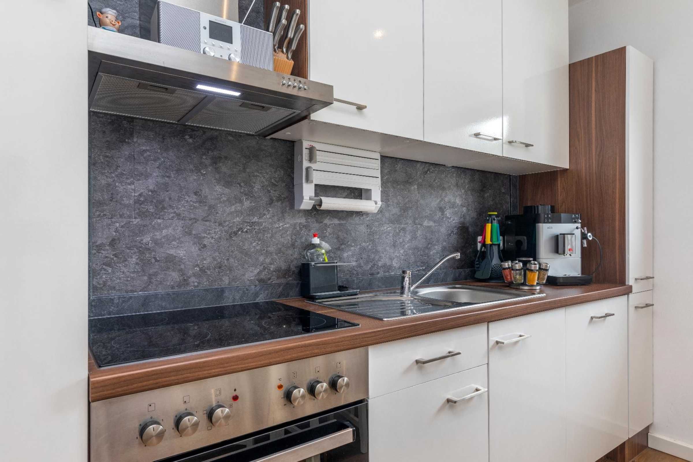 Die separate Küche ist mit Geschirrspüler, Backofen, Ceran-Kochfeld, Kühlschrank mit Gefriermöglichkeit, Mikrowelle und Kaffeemaschine sowie Toaster und Wasserkocher ausgestattet. Waschmaschine, Trockner, Wäscheständer und Wäschespinne stehen ebenfalls zur Verfügung.
