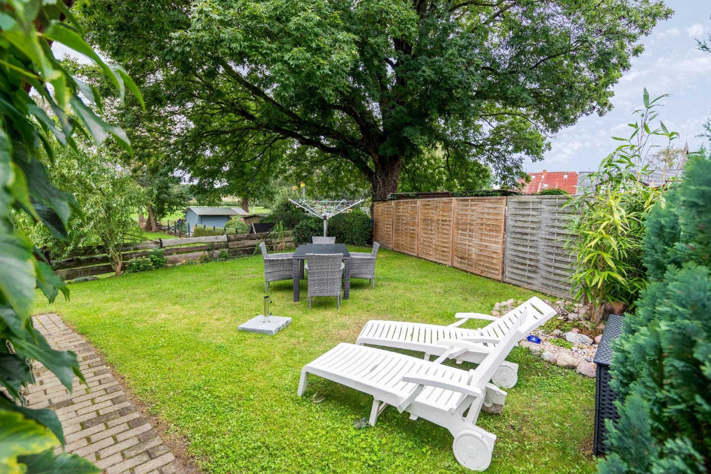 Pro Ferienwohnung gibt einen abschließbaren Abstellraum für die vorhandenen Fahrräder (inkl. Helm). Eine kleine Liegewiese mit Gartenmöbeln zu dieser Wohnung befindet sich hinter dem Haus. Grillmöglichkeit und Feuerstelle für gemütliche Abende stehen zur Verfügung.