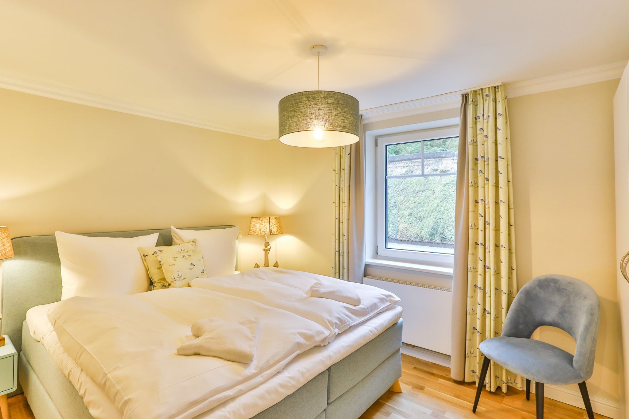 Die Wohnung Hagensche Wiek verfügt über einen offenen, gemütlichen und auch modernen Wohn- und Essbereich, 1 Schlafzimmer und 1 Badezimmer. Vom Wohn- und Essbereich aus gelangen Sie durch ein großes Fensterschiebeelement auf eine großzügige Terrasse mit Blick Richtung Bodden Hagensche Wiek. Eine Aufbettung im Wohnzimmer (ausziehbarer Schlafsessel) kann auf Anfrage vorbereitet werden.