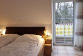 Im großzügigen Duschbad befindet sich die Waschmaschine. Die Dusche hat einen niedrigen Einstieg und verfügt über eine automatische Mischbatterie für das Duschwasser. Der nach Süden gehende Balkon ist mit einem Sichtschutz versehen und bietet ausreichend Platz für einen angenehmen Aufenthalt im Freien. Gartenmöbel mit passenden Sitzauflagen und ein Sonnenschirm gehören zur Ausstattung.