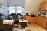 Die Fewo (36 qm) ist hell und freundlich eingerichtet und mit allem Komfort ausgestattet. In der Küchenzeile gehören eine Mikrowelle, eine Geschirrspülmaschine sowie ausreichend Geschirr mit zur Ausstattung. Die Küche wurde 2022 komplett erneuert.