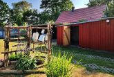 Der kleine gemütliche Bungalow hat eine Terrasse mit Gartenblick, einen Wohnraum mit Küche, einen Schlafraum und ein Bad mit Dusche/WC.