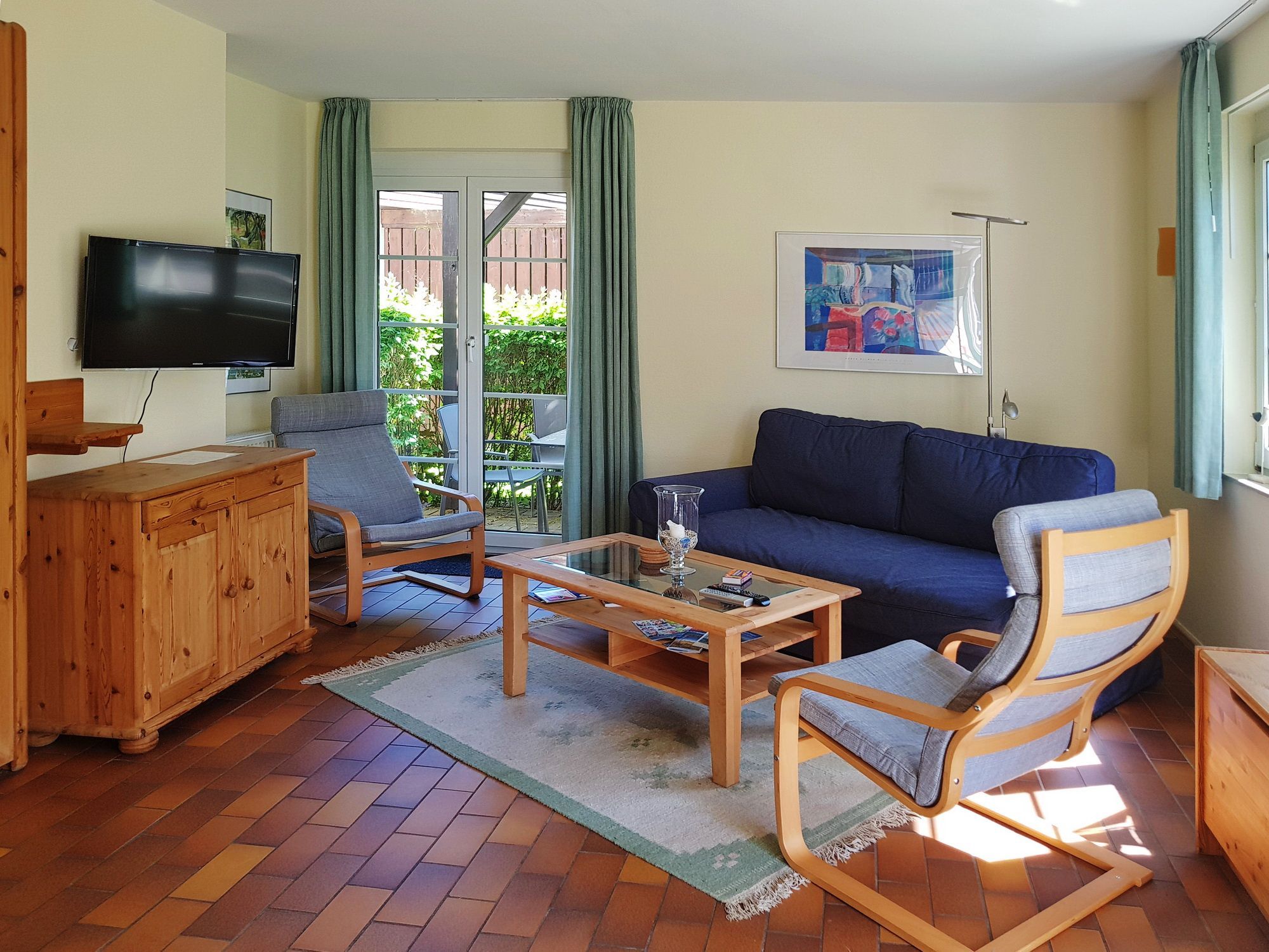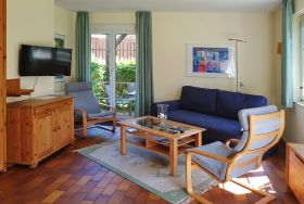 Komfortable 51qm große Ferienwohnung in der schönen Wohnanlage Kormoran im Ostseebad Prerow mit Wohnraum, Küche, Schlafzimmer, Bad mit Dusche/WC und 2. WC.