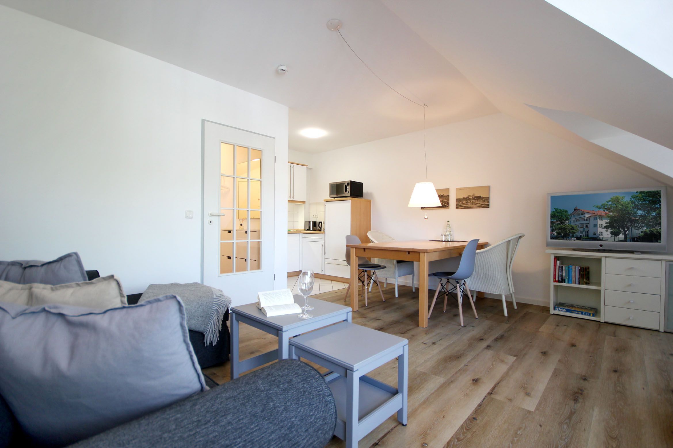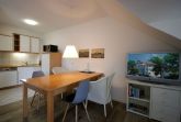 Ihre 2-Zimmer-Nichtraucherwohnung 90787 hat eine Größe von ca. 49 qm und ist für bis zu 4 Personen eingerichtet. Sie befindet sich in der Margaretenstraße 15, im 3. Obergeschoss und verfügt über einen Balkon nach Südwesten sowie einen Stellplatz im nahegelegenen Parkhaus. Die modern eingerichtete Wohnung teilt sich auf in einen Wohnraum mit direktem Zugang zum möblierten Balkon sowie eine komplette Küchenzeile, ein Badezimmer, ein Schlafraum und Flur mit Garderobe. Im Wohnraum finden Sie neben der Sitzgruppe mit Schlaffunktion noch einen separaten Essplatz. Ein Flachbildfernseher sowie WLAN gehören zur technischen Ausstattung. Der Schlafraum ist mit einem Doppelbett, einem Kleiderschrank und Sitzmöglichkeiten. Das Badezimmer erwartet Sie mit einem Waschbecken, Dusche und WC. Die Wohnküche beinhaltet u.a. ein Cerankochfeld, Geschirrspüler, Mikrowelle, Kühlschrank, Kaffeemaschine, Wasserkocher, Toaster sowie umfangreiches Kücheninventar.