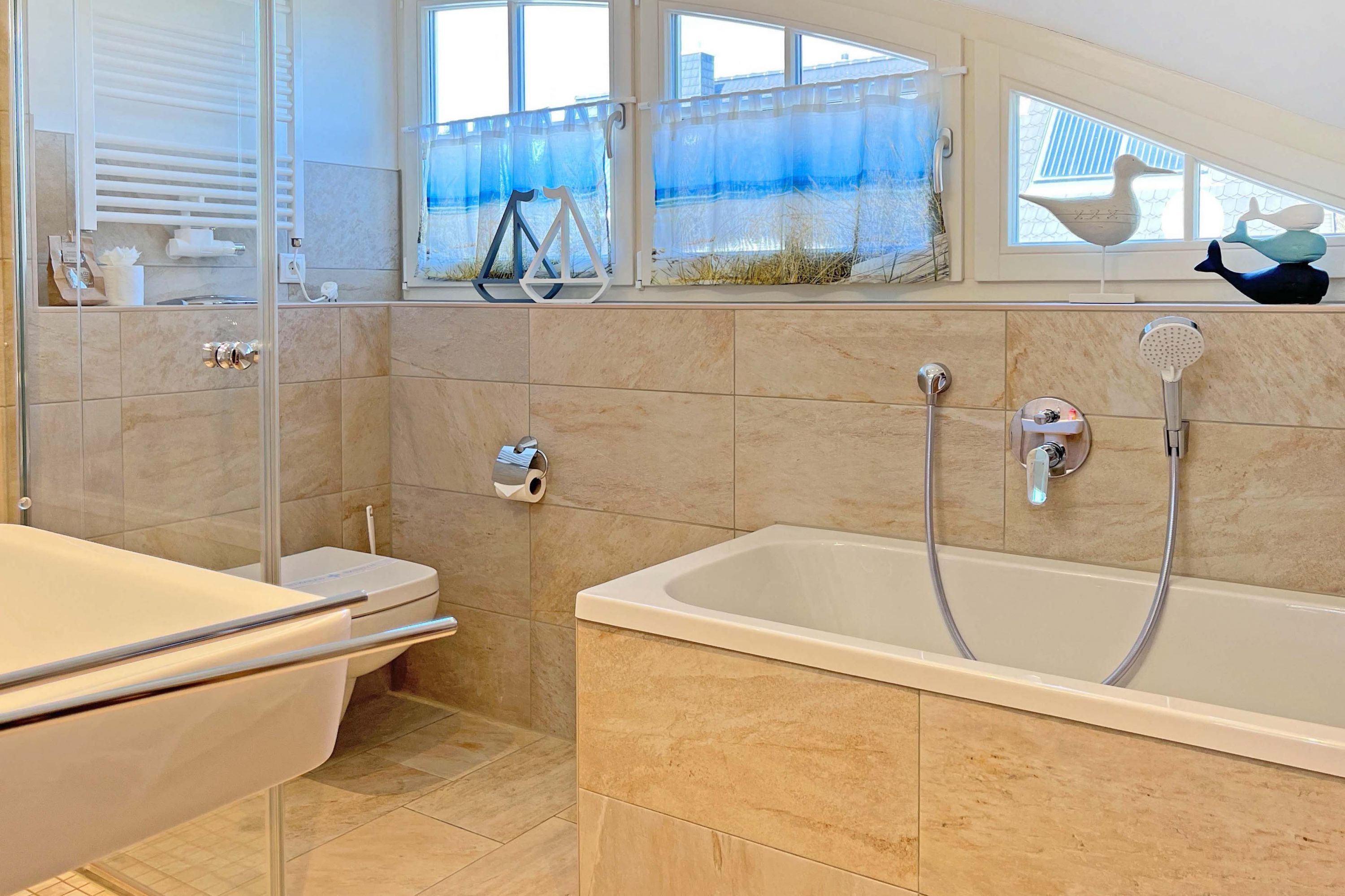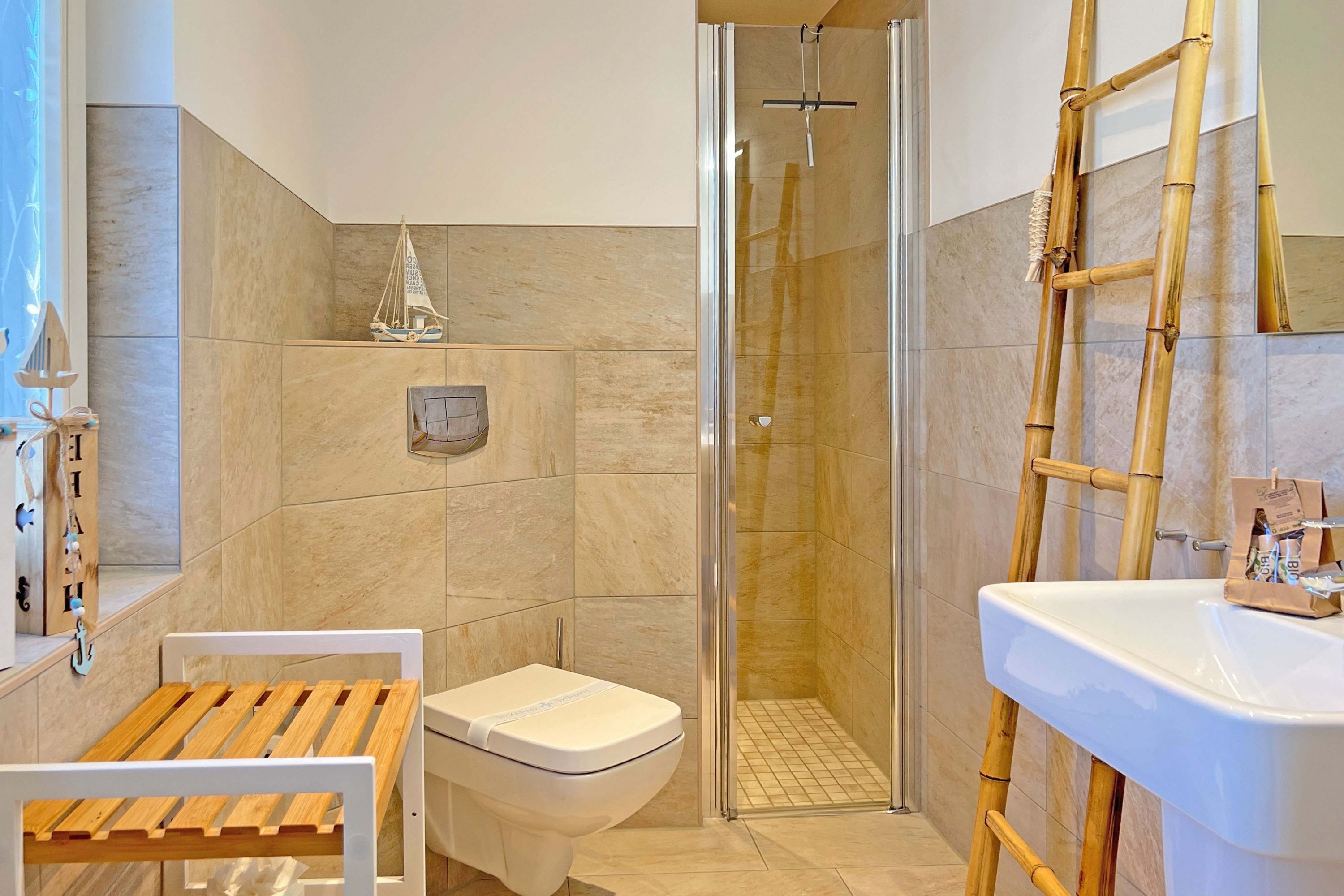 • Zwei Badezimmer: eines im Erdgeschoss mit Dusche, eines im Obergeschoss mit Dusche und Badewanne