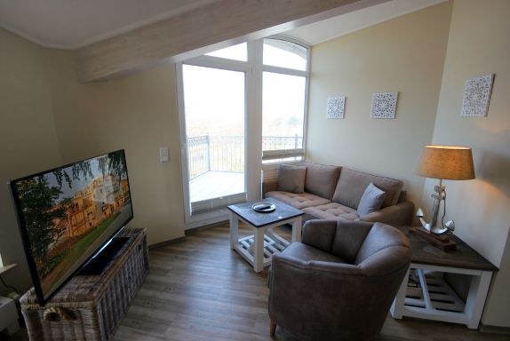 Ihre 2-Zimmer Ferienwohnung 65RB12 Leuchtturm mit Balkon befindet sich im 2. Obergeschoss und ist ca. 44 qm groß sowie für bis zu 2 Personen gut geeignet. Neben dem gemütlichen Wohnbereich mit Zugang zum Balkon mit Blick auf den Selliner See, gehört eine Sitzecke, ein Essbereich, Flachbild TV sowie WLAN zur Nichtraucherwohnung. Im Schlafzimmer erwartet Sie ein Doppelbett, ein zusätzlicher TV, ein Kleiderschrank sowie ein weiterer Zugang zum Balkon. Zudem können Sie eine voll ausgestattete und im Wohnbereich integrierte Küchenzeile mit Geschirrspüler, Backofen, Wasserkocher, Toaster, Kaffeemaschine sowie umfangreiches Küchengeschirr nutzen. Das moderne Badezimmer erwartet Sie mit Waschtisch, WC und Dusche. Einen Parkplatz sowie eine Fahrradunterstellmöglichkeit befinden sich direkt am Objekt.