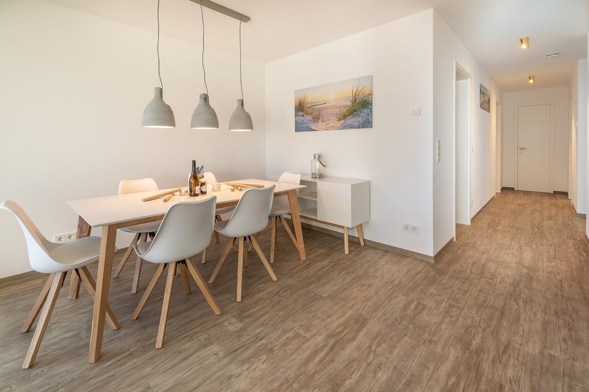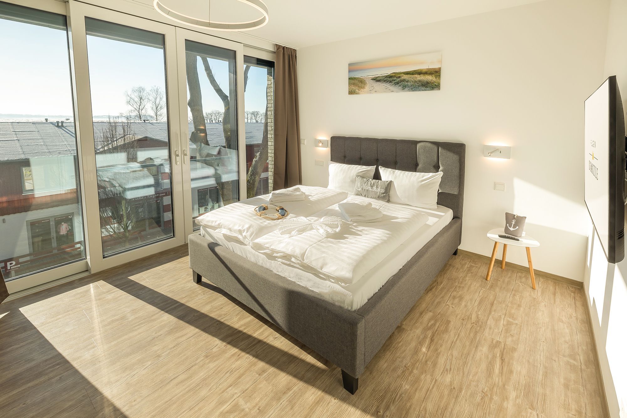 Bequem per Lift erreichen Sie den Eingang Ihres 123qm großen Domizil in der 3.Etage. In der Ferienwohnung angekommen, fühlen Sie sich direkt Willkommen. Helle, lichtdurchflutete Räume, moderne Bauart und gradliniges Design, wirken edel und angenehm zugleich. Das 2021 fertiggestellte Objekt befindet sich in direkter Lage zum kleinen Hafen von Lauterbach, einem Ortsteil der Rosenstadt Putbus. Der obere Bereich der Wohnung lädt mit seinem fantastischen Wasserblick zum gemütlichen verweilen ein. Die angrenzende Dachterrasse bietet einen großen Strandkorb, von dem aus sich herrliche Sonnenuntergänge genießen lassen. Die Lage dieser tollen Unterkunft lädt Aktivurlauber zu langen Spaziergängen oder ausgedehnten Radtouren ein. Zusätzlich dazu bietet eine angrenzende Wassersportschule die Möglichkeit, Boote zu leihen oder den Urlaub für einen Segelkurs zu nutzen. In der näheren Umgebung und direkt am Hafen bieten verschiedene Restaurants diverse Köstlichkeiten an. Auch fangfrischer Fisch ist am Hafen zu bekommen und lässt sich in der voll ausgestatteten Küche Ihrer Ferienwohnung selbst zubereiten. Zusammengefasst lassen die tolle Lage und die moderne Ausstattung die Unterkunft zu einem wundervollen Domizil für Ihren Urlaub werden.