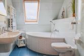 • Badezimmer: Dusche, Eckbadewanne, Handtuchtrockner und Haartrockner