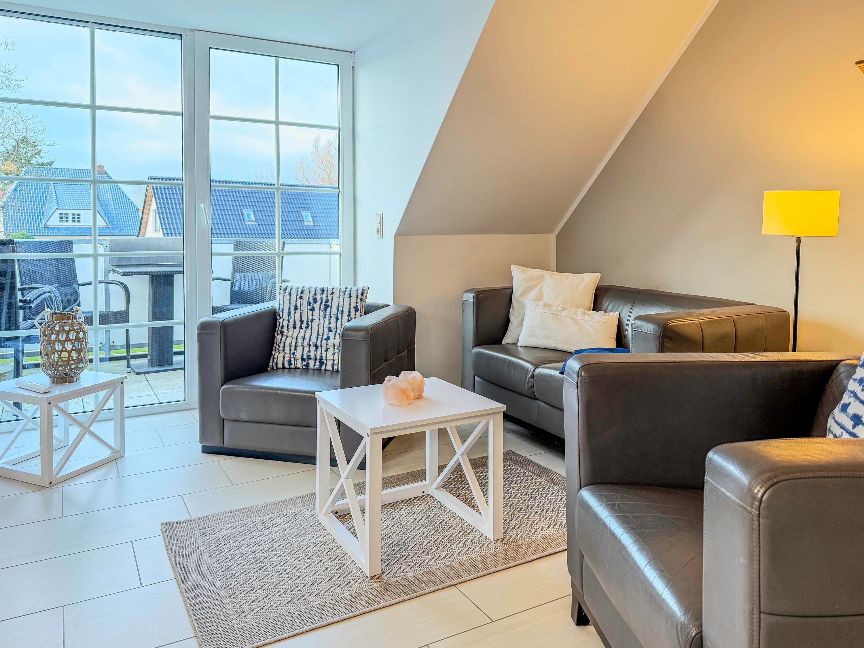 • Gemütlicher Wohnbereich: Couch, Sessel, Essgruppe und moderne Unterhaltungstechnik