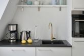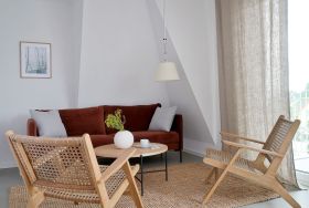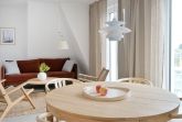 Die lichtdurchflutete 3-Zimmerwohnung des vorderen Apartmenthauses bietet mit einer Fläche von 46 m² Aufenthaltsmöglichkeiten für 2-4 Personen. Eine offene, vollausgestattete Küche schafft hohe Transparenz zum Wohnraum und lädt zu gemeinsamer Zeit ein. Die Einrichtung der Wohnung fokussiert sich auf ein modernes und gleichzeitig gemütliches Interieur.
