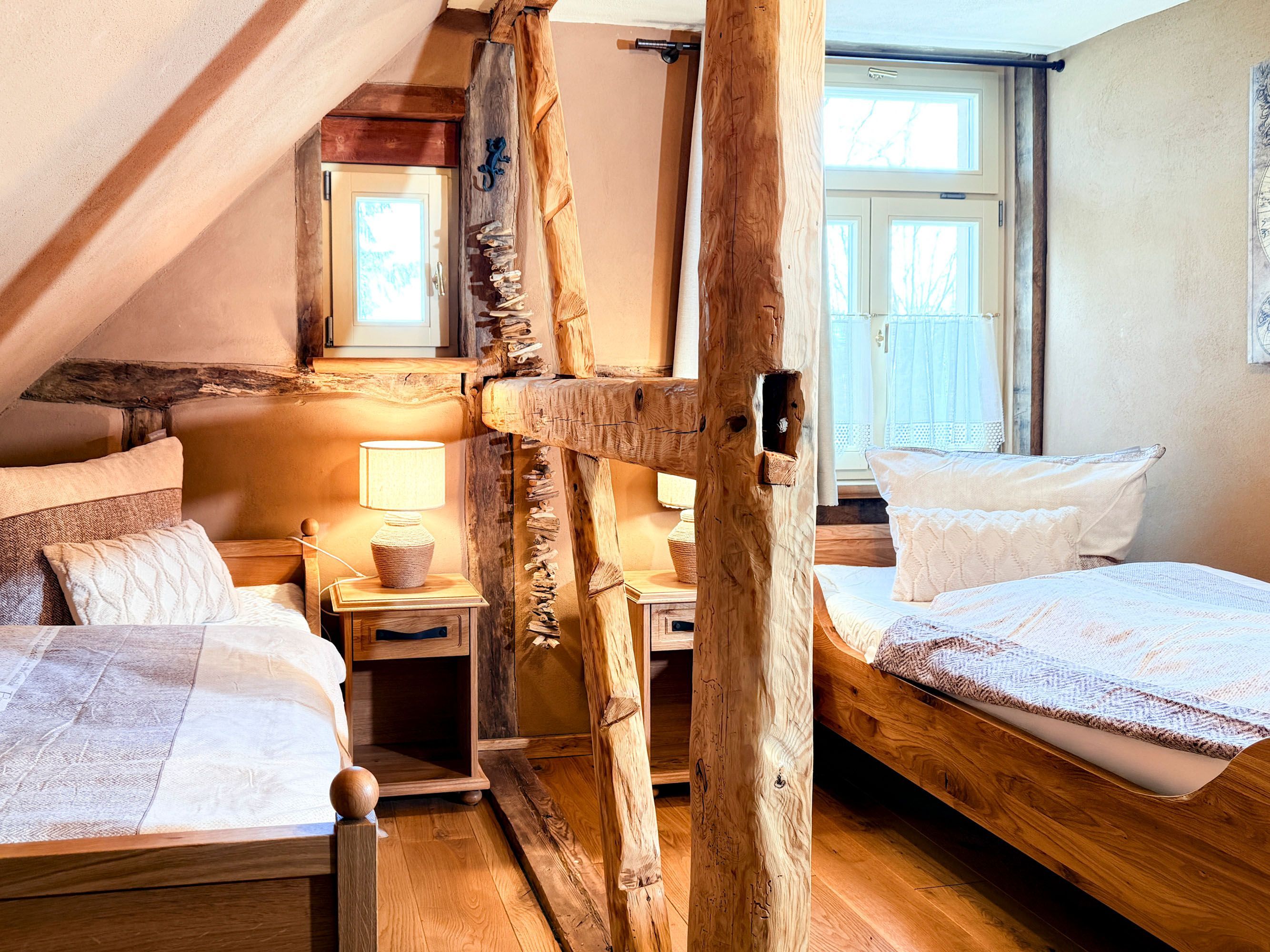 • Ein Schlafzimmer mit zwei Einzelbetten (90 x 200 cm)