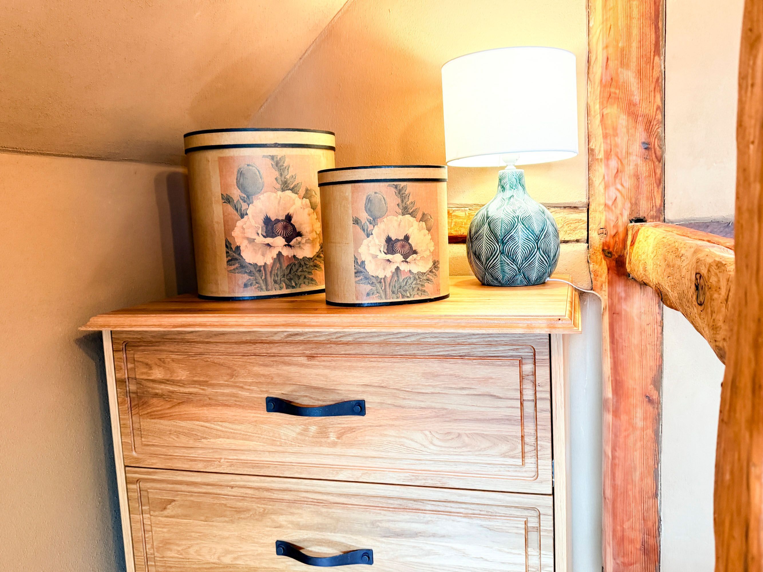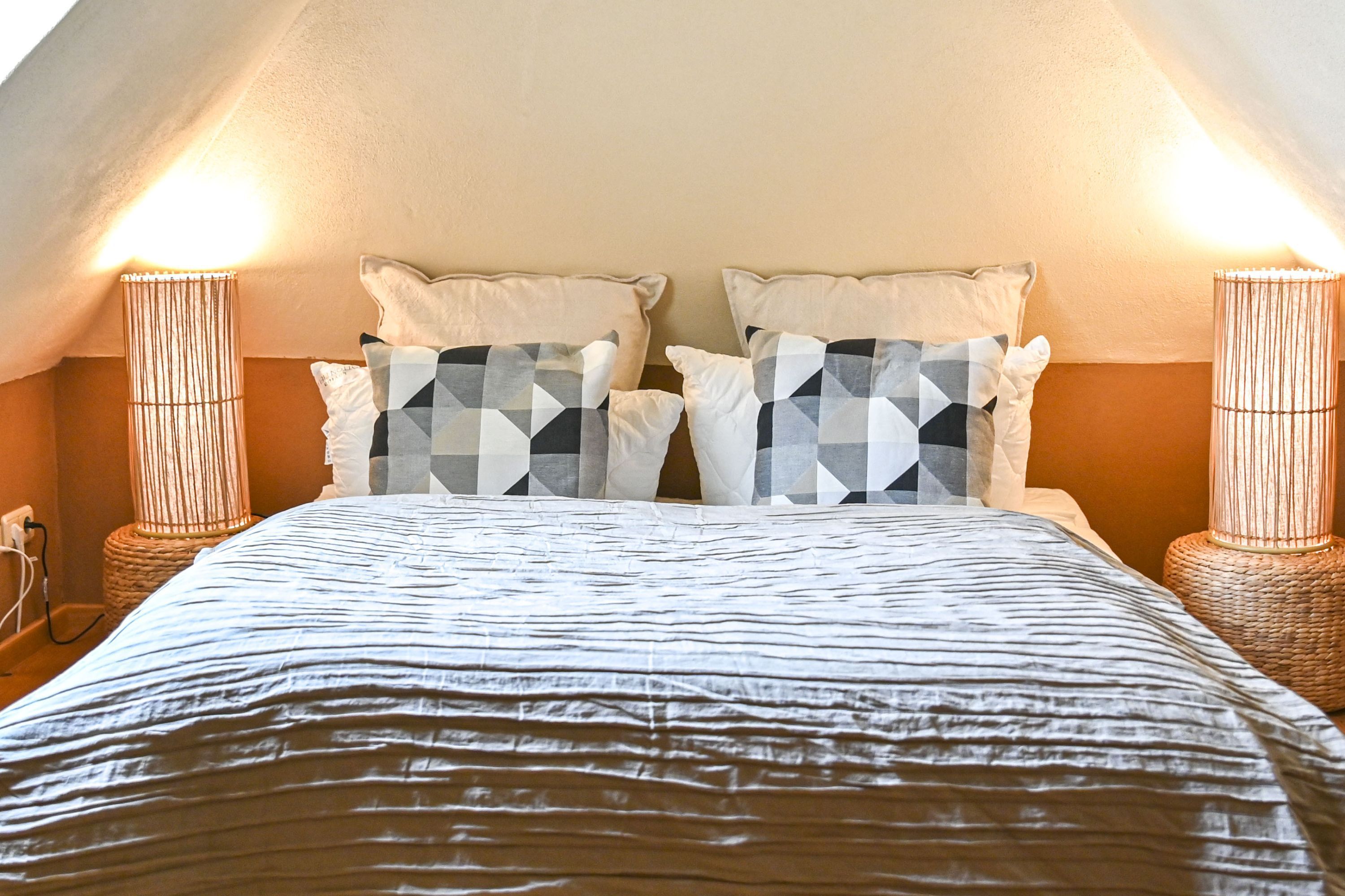 • Ein Dachgeschoss-Schlafzimmer mit französischem Bett (140 x 200 cm)