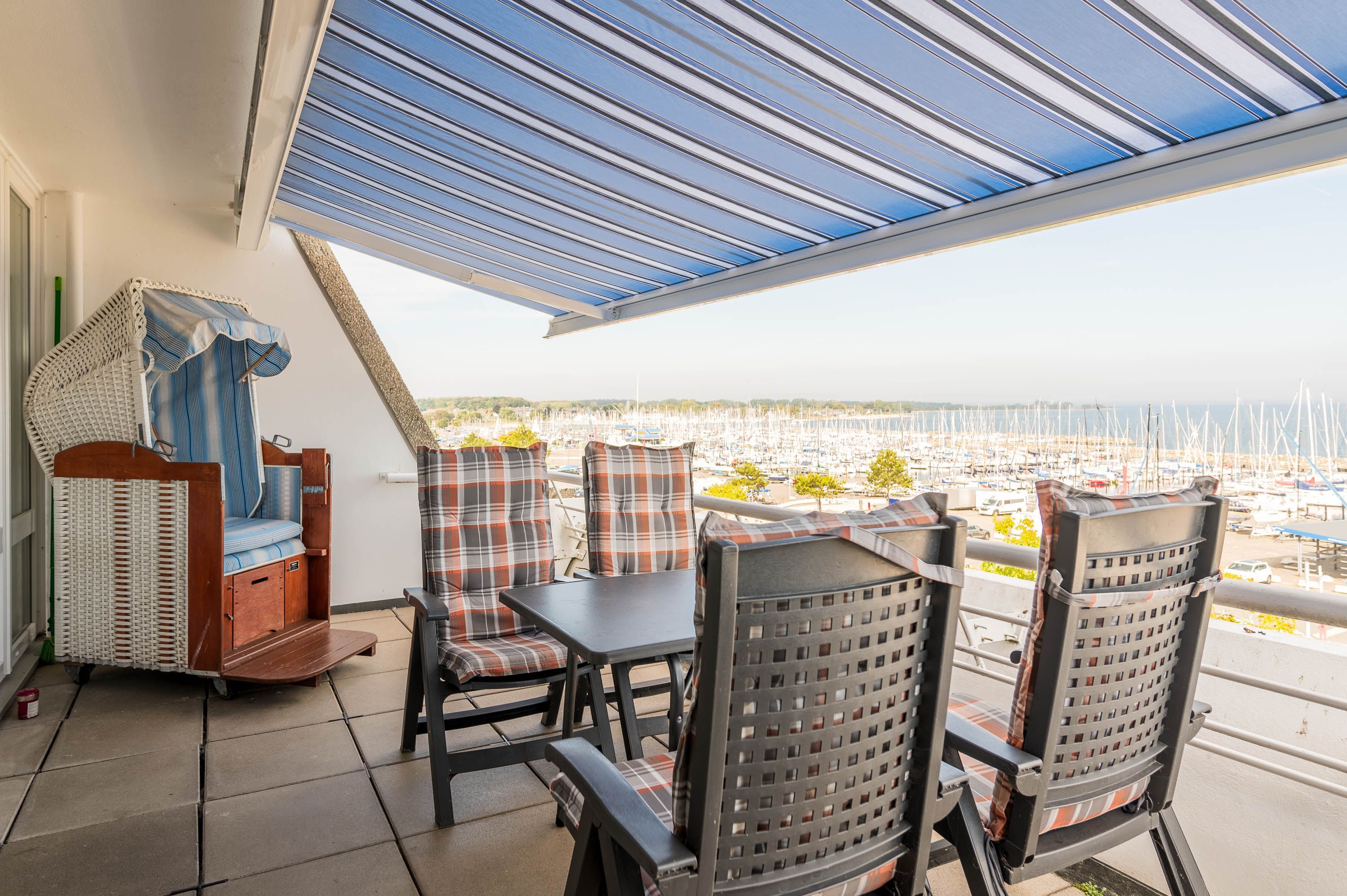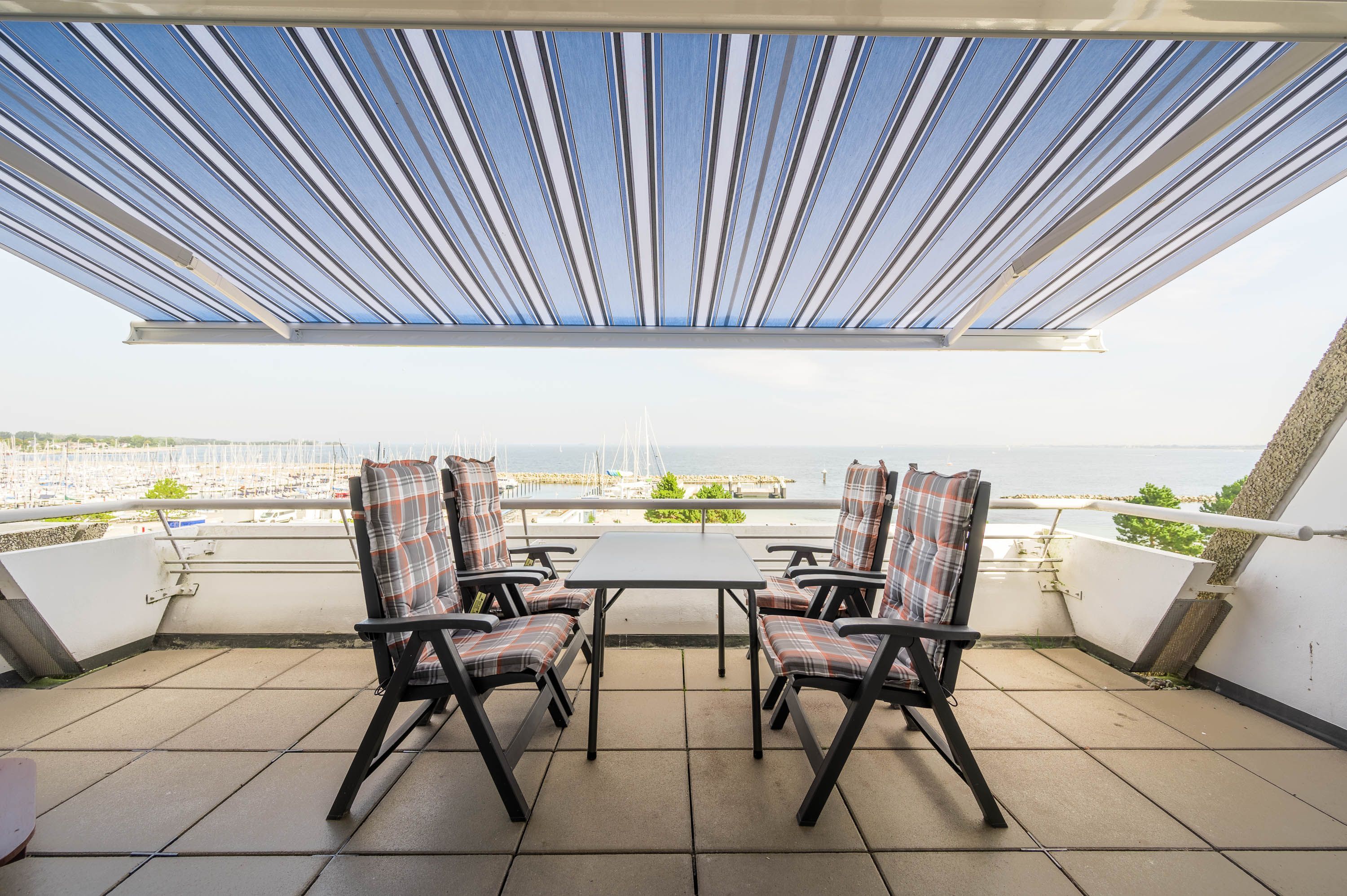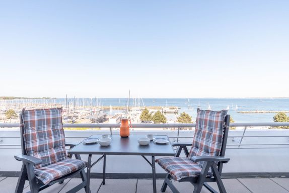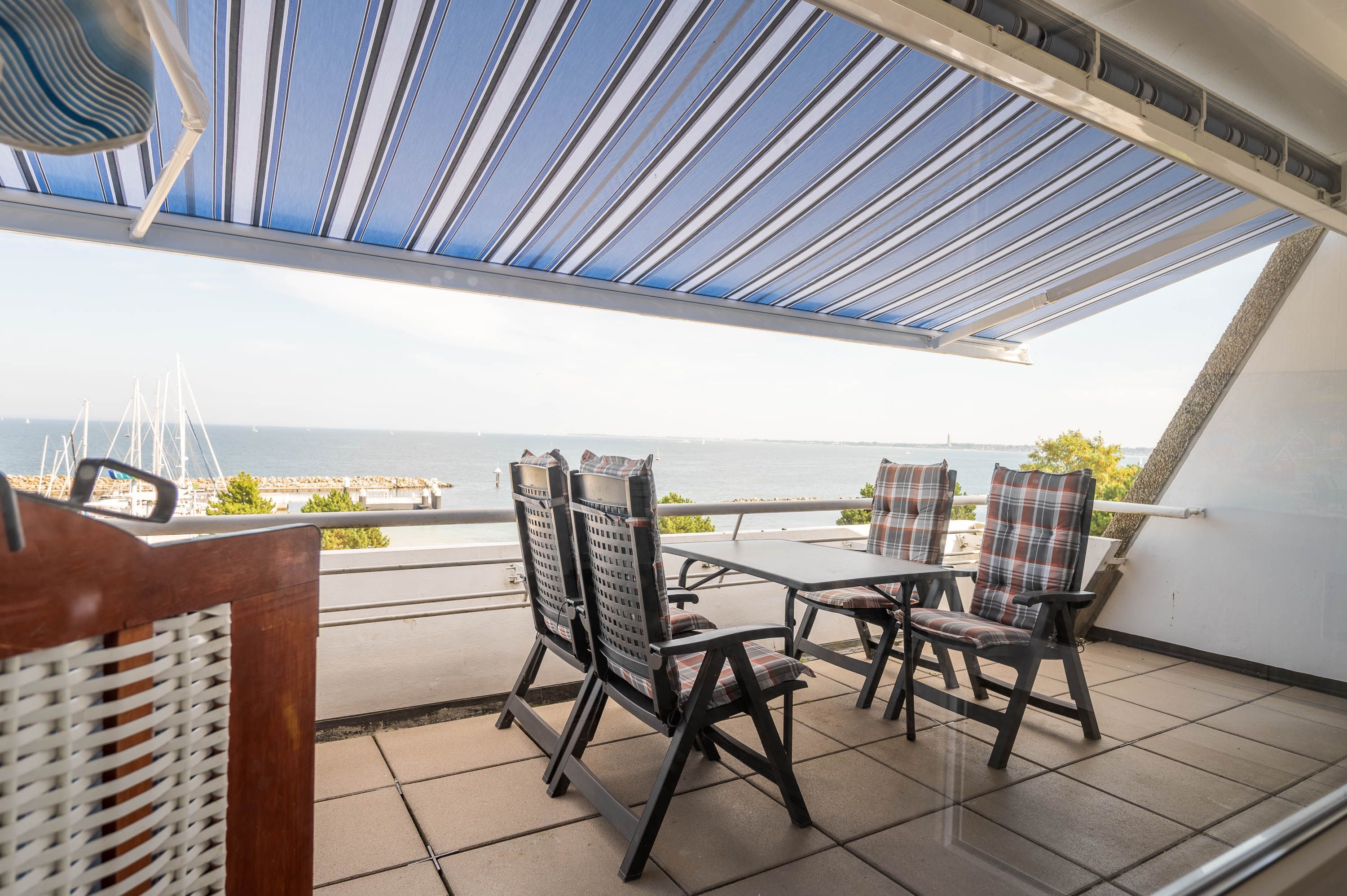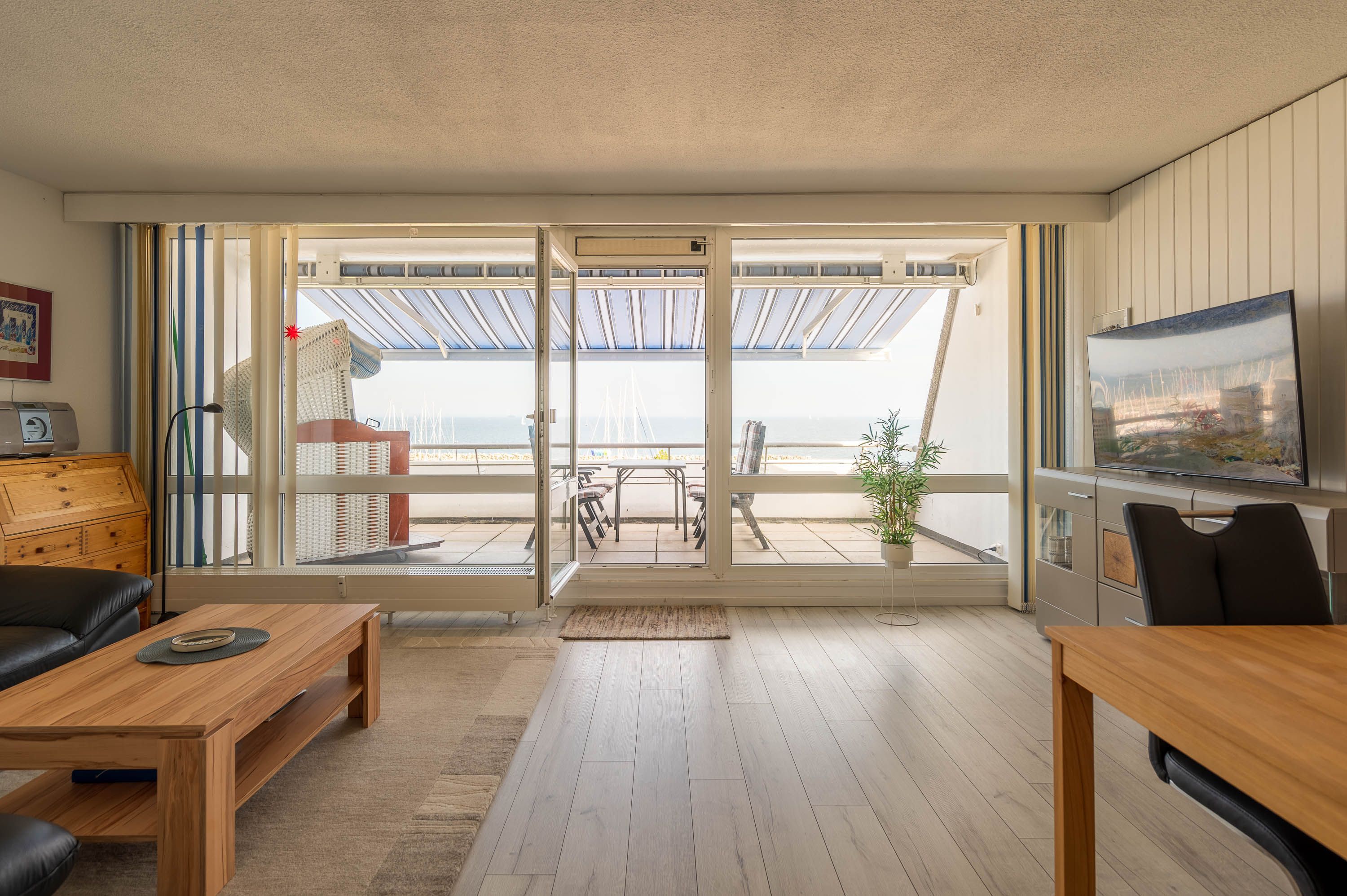 Reinkommen, staunen und sich wohlfühlen lautet hier das Motto für Ihren Urlaub. Das 1-Zimmerappartement ist hell und freundlich im maritimen Stil ausgestattet und besticht durch den traumhaften Blick auf die Ostsee, den Segelhafen, den Strand und Schiffe, Schiffe, Schiffe. Es ist immer was los und zu bestaunen und gucken - sehen und erleben Sie es selbst. Ein bequemes Ecksofa lädt zu gemütlichen Abenden ein und lässt sich mit wenigen Handgriffen zur Schlafgelegenheit für eine 3. Person umbauen. In der separaten Schlafkoje befindet sich ein Doppelbett (160 x 200). Die gut ausgestattete Einbauküche lädt zu gemeinsamen Kochaktionen mit Meeresblick ein. Ein Esstisch mit 4 Stühlen, ein Sekretär, ein Sideboard und ein 55 Zoll TV (an der Wand angebracht) vervollständigen das runde Gesamtbild der Wohnung. Im Flur befinden sich ausreichend Einbauschränke und das neue und moderne Badezimmer ist mit Dusche, Waschbecken und WC ausgestattet. Der große Balkon lädt - ausgestattet mit Strandkorb, Markise, Stühlen und einem Tisch - zum gemütlichen Frühstück bei romantischen Sonnenaufgang ein - lassen Sie sich zu jeder Zeit verzaubern und die Seele baumeln beim Weitblick auf die Ostsee.