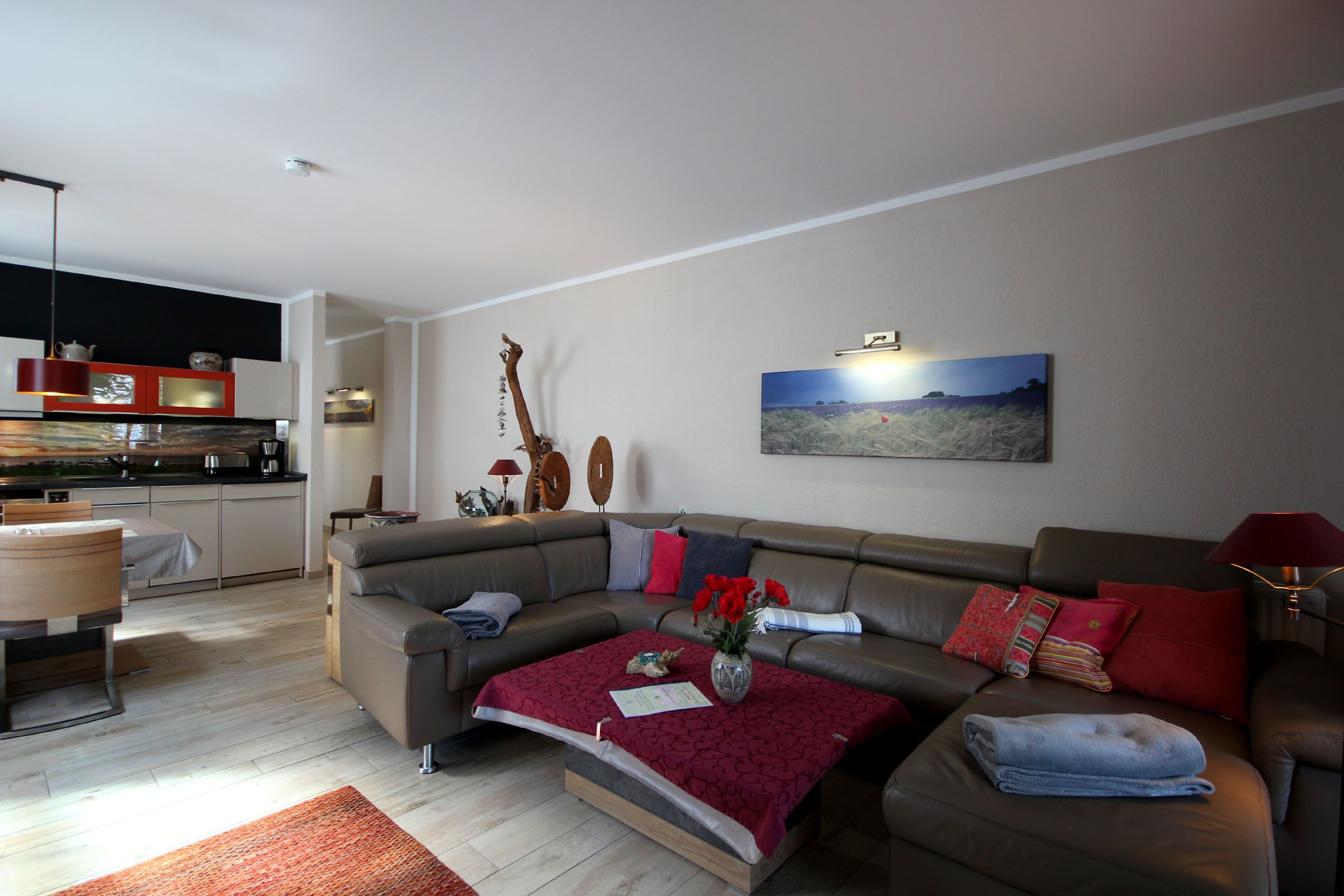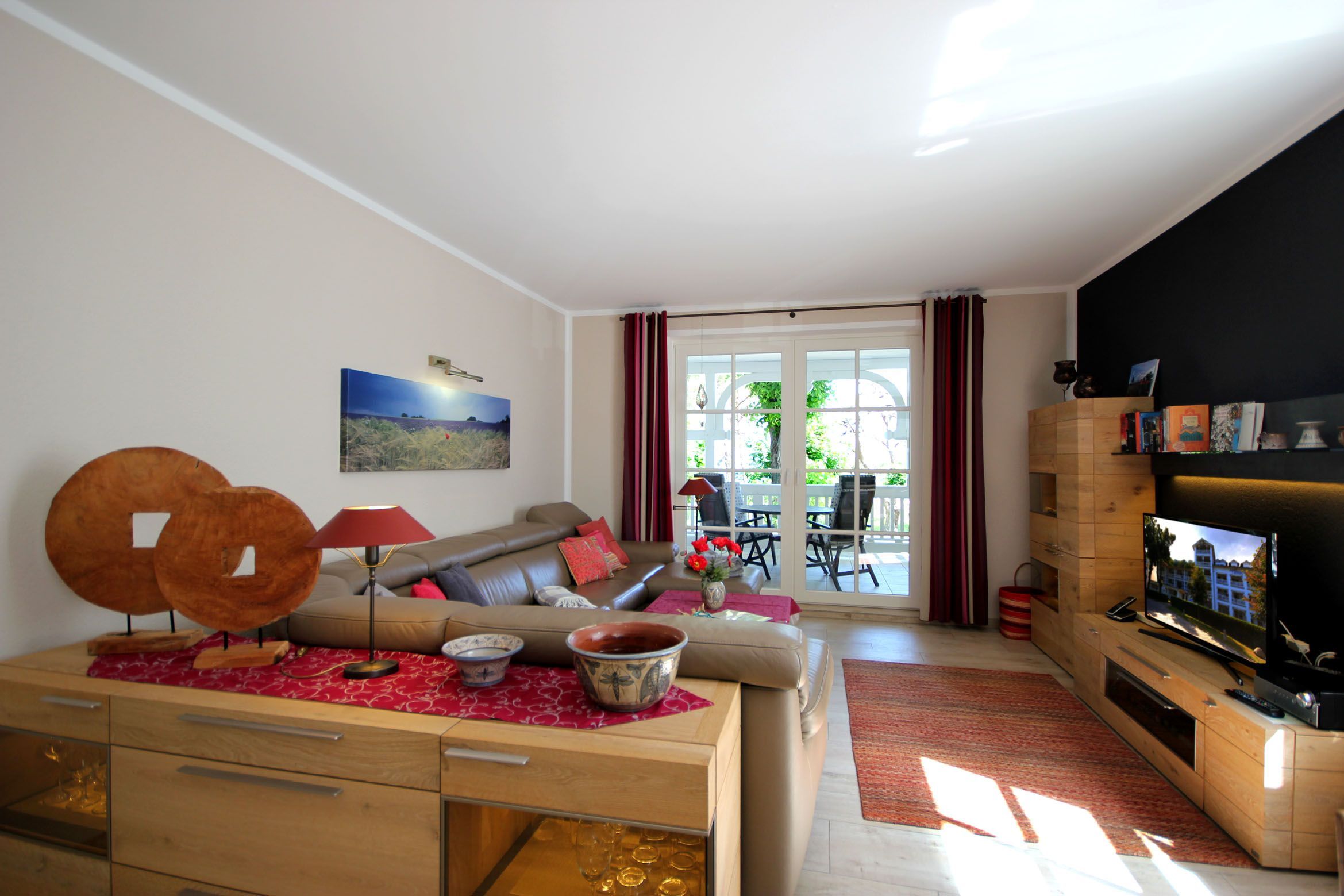 Die attraktive Nichtraucherwohnung 213RB27 Strand-Rose ist ca. 60 qm groß und für bis zu 4 Personen komplett eingerichtet. Vom modernen Wohnzimmer sowie vom überdachten Balkon mit dazugehörigen Möbeln genießen Sie einen direkten Panoramablick auf die Ostsee. Die mit Liebe zum Detail ausgestattete 2-Raumwohnung bereitet durch seine hochwertige und moderne Ausstattung einen besonders angenehmen Aufenthalt. Dieses schöne Appartement gliedert sich auf in einen stilvoll eingerichteten Flur mit Garderobe, einen gemütlichen Wohnraum mit direktem Zugang zum Balkon, eine Küchenzeile, ein Schlafzimmer und ein Tageslichtbad mit Dusche, Waschtisch, WC und Fön. Das Wohnzimmer ist mit einem Essplatz und einer bequemen Sitzgruppe, die auch eine zusätzliche Schlafmöglichkeit für zwei weitere Personen bietet, möbliert. Die technische Ausstattung umfasst einen großen Smart-TV samt Soundanlage, ein Radio sowie einen kostenfreien WLAN-Zugang. Die Küchenzeile erwartet Sie mit einem Geschirrspüler, Cerankochfeld, Backofen, Kühlschrank mit kleinem Gefrierfach, Mikrowelle, Kaffeemaschine, Toaster, Wasserkocher und weiteren Küchenhelfern. Das Schlafzimmer verfügt über ein gemütliches Doppelbett sowie einen geräumigen Kleiderschrank und ein zusätzliches Verdunklungsrollo für eine angenehme Nachtruhe. Ein wohnungseigener Parkplatz steht Ihnen direkt hinterm Haus zur Verfügung.