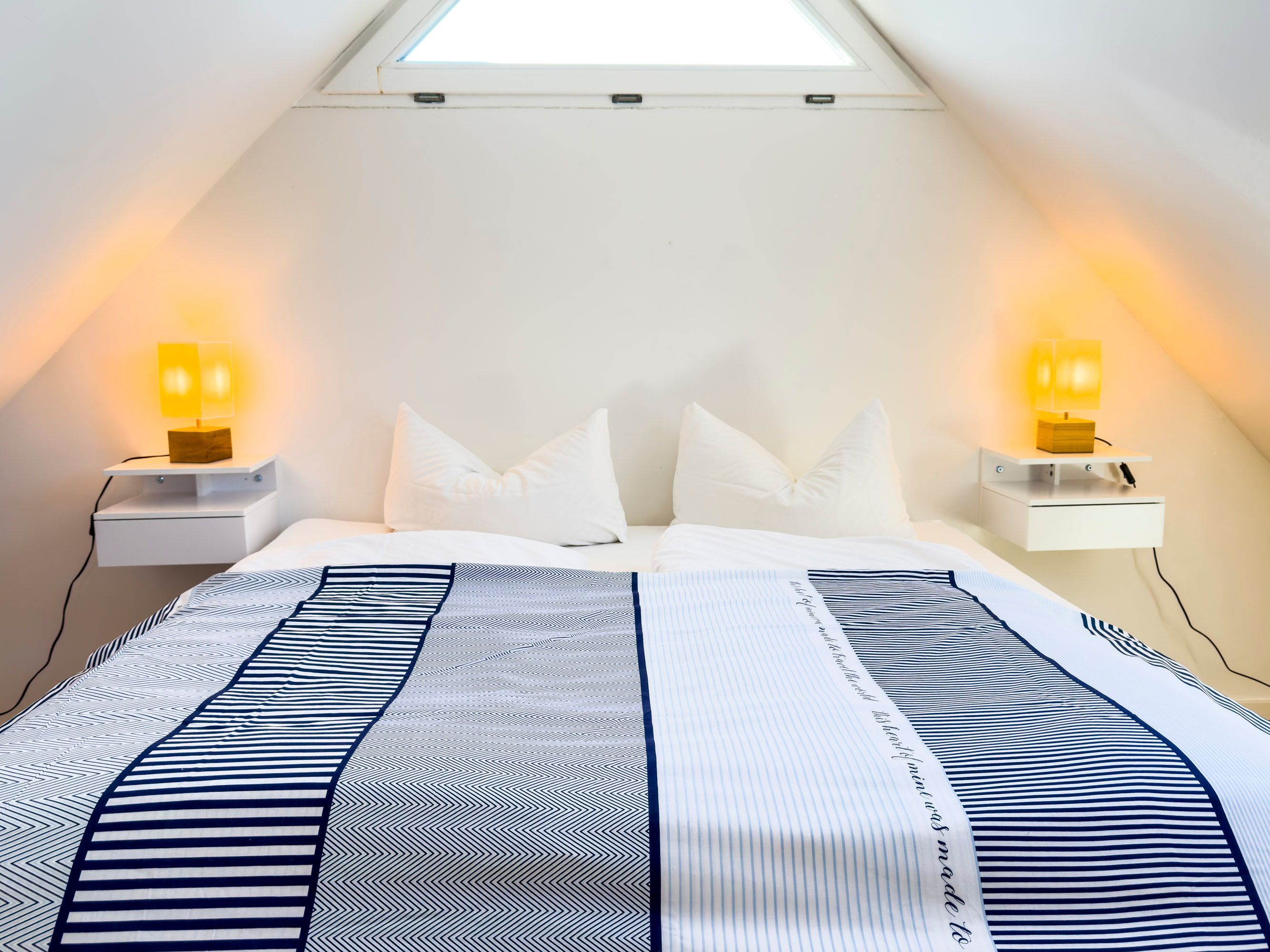 • Schlafzimmer: Ein Schlafzimmer mit einem Doppelbett (180 x 200 cm) und einem Einzelbett (90 x 200 cm)
