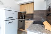 In der 1. Wohnebene finden Sie das Wohnzimmer mit großem Ecksofa, Flatscreen-TV, Essecke und kleiner offenen Wohnküche.