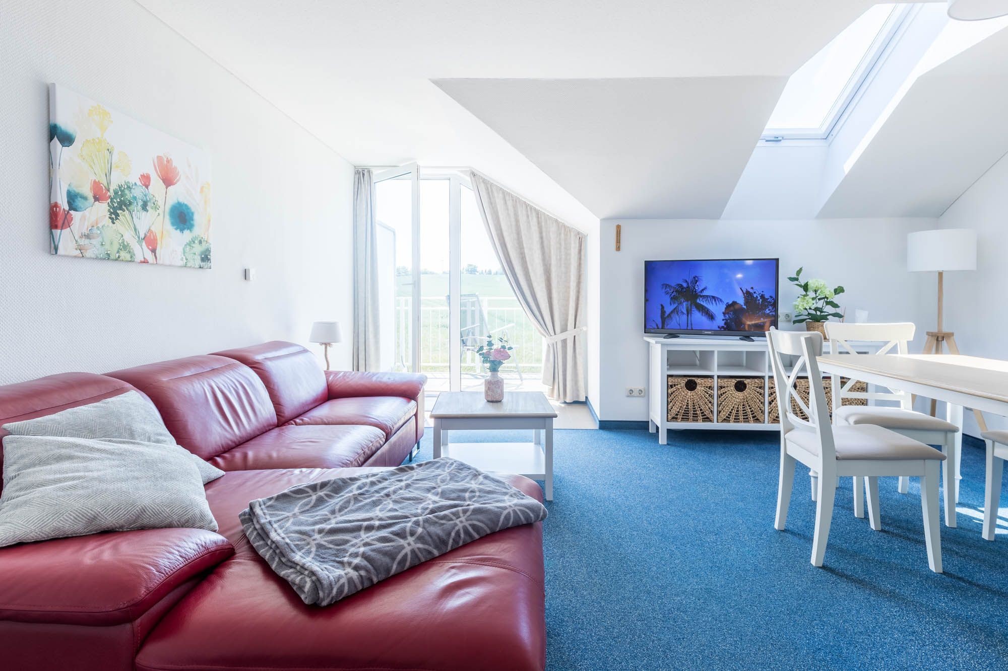 In dieser Nichtraucher-Wohnung stehen für unsere kleinsten Gäste ein Hochstuhl und ein Reisebettchen kostenfrei zur Nutzung bereit. Die Wohnung hat einen eigenen Eingang über den Laubengang mit herrlicher Aussicht zur Ostsee.